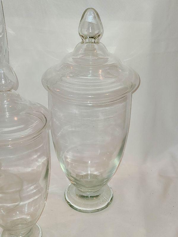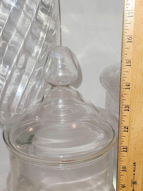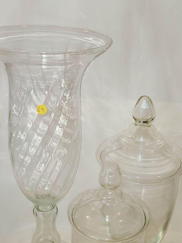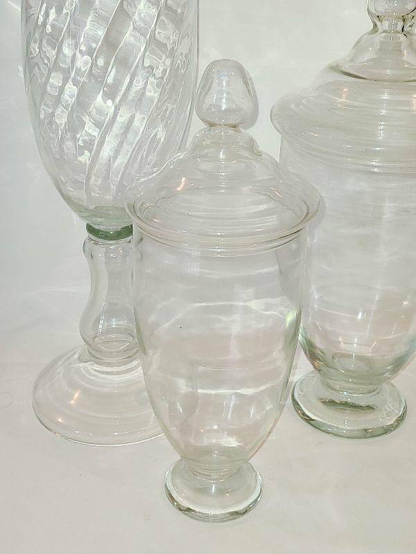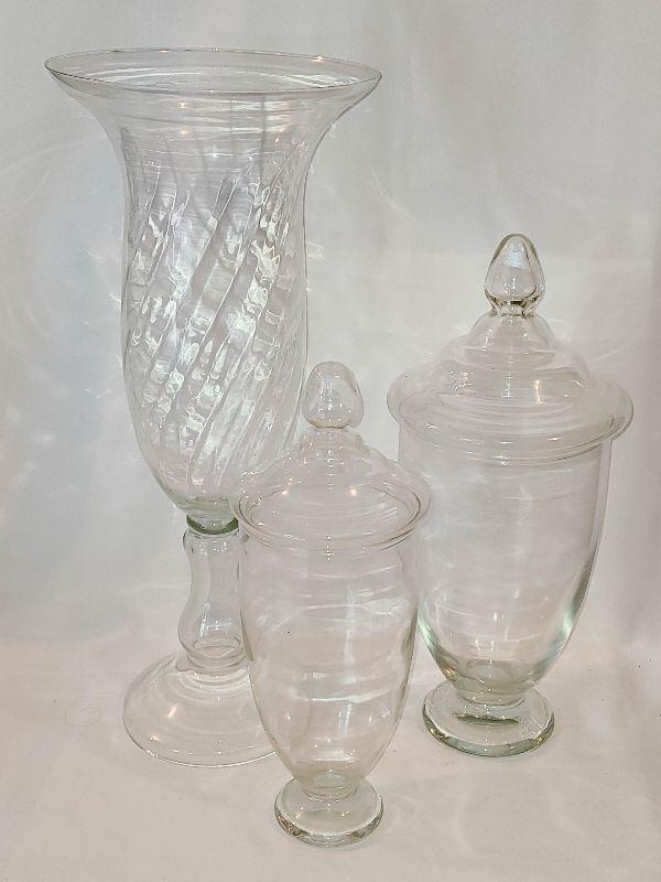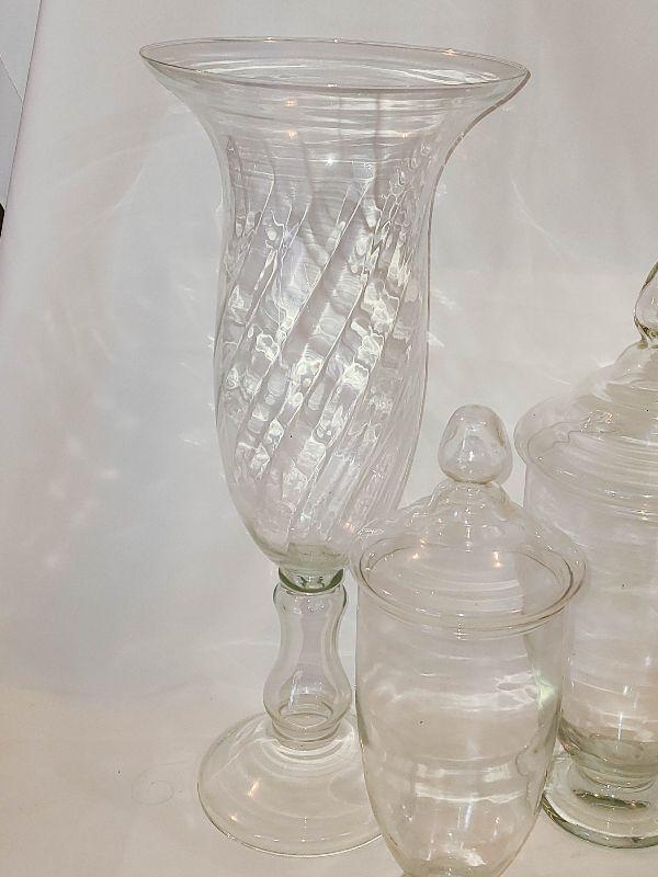 These huge glass jars and vase are perfect for candy bars at a wedding or accents at any party! Please see pictures for sizing and condition! Very nice lot!!