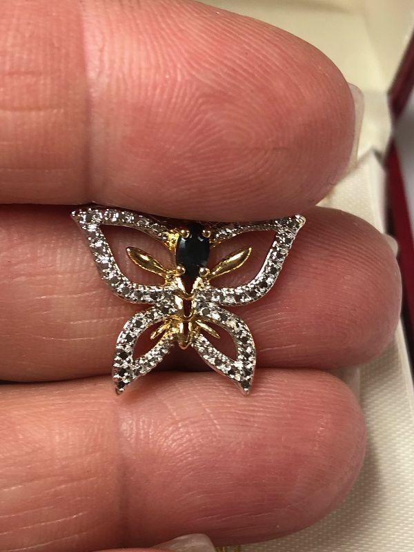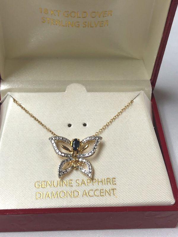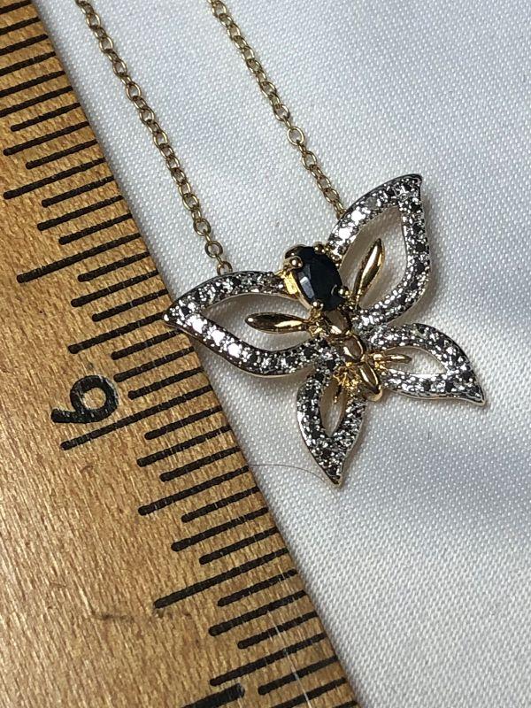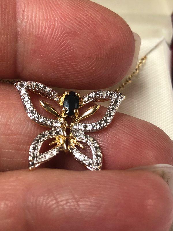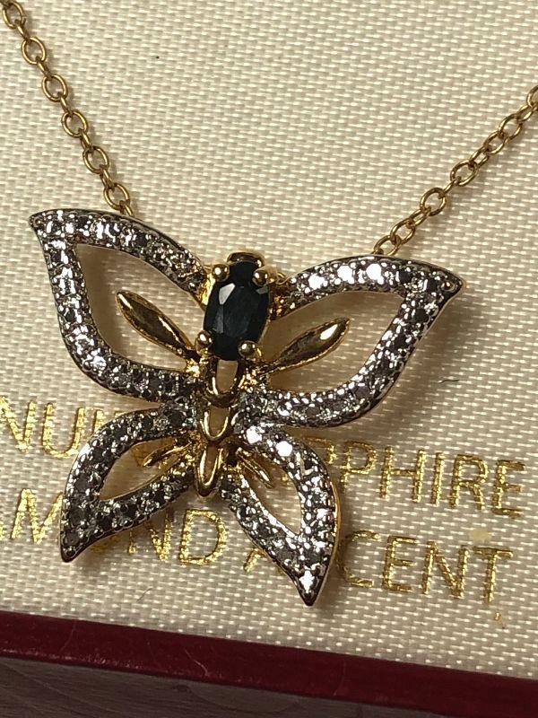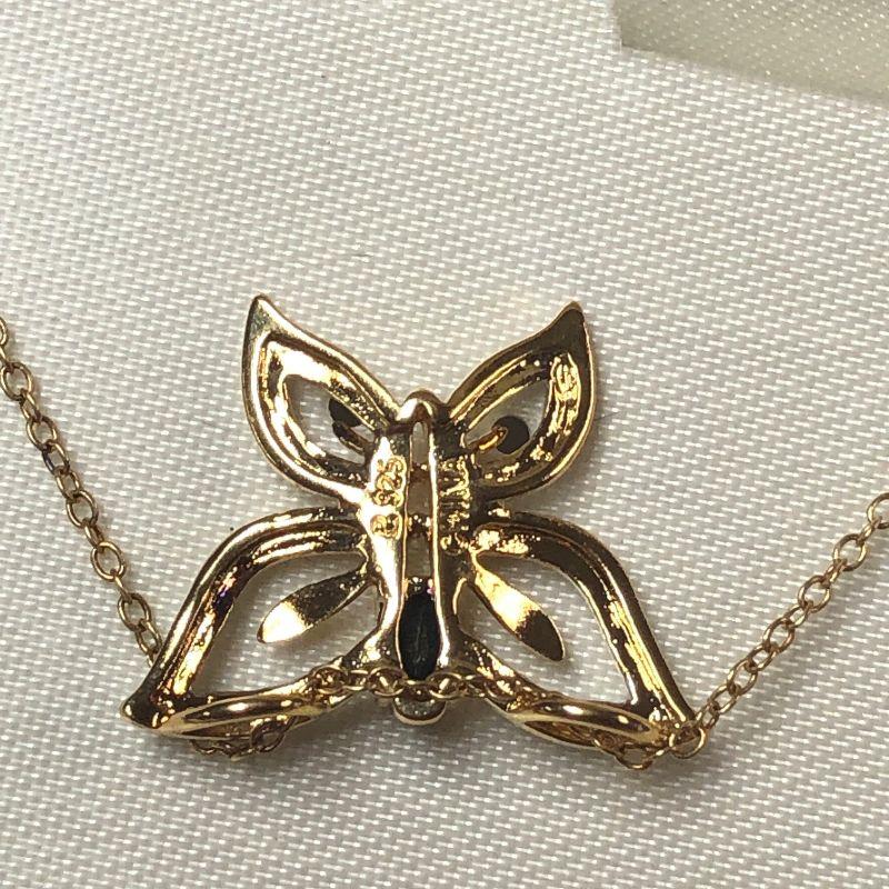 J9: 18kt Gold Over Sterling Butterfly Necklace-Genuine Sapphire & Diamond Accent