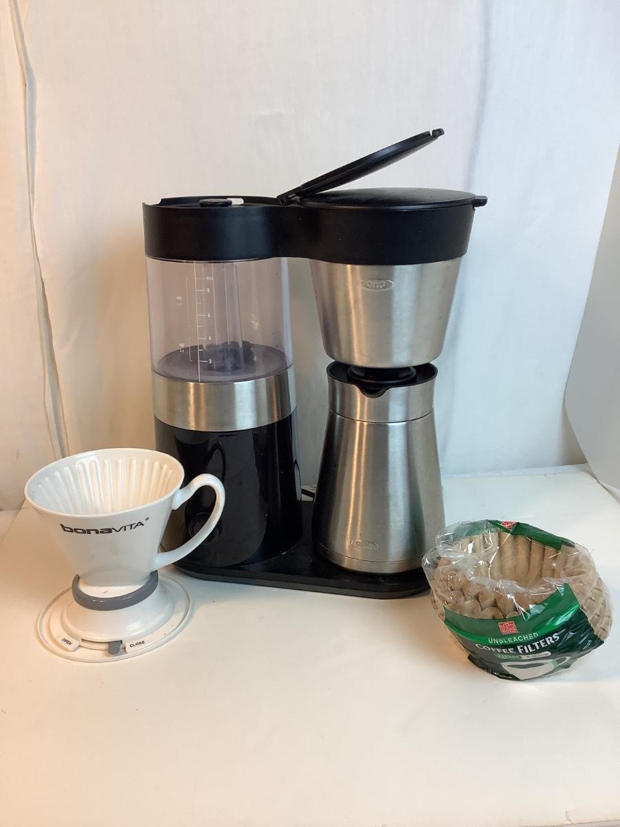 This light comes with Harris Teeter coffee filters, Bonavita coffee filter attachment, and one OXO coffee pot Brewer