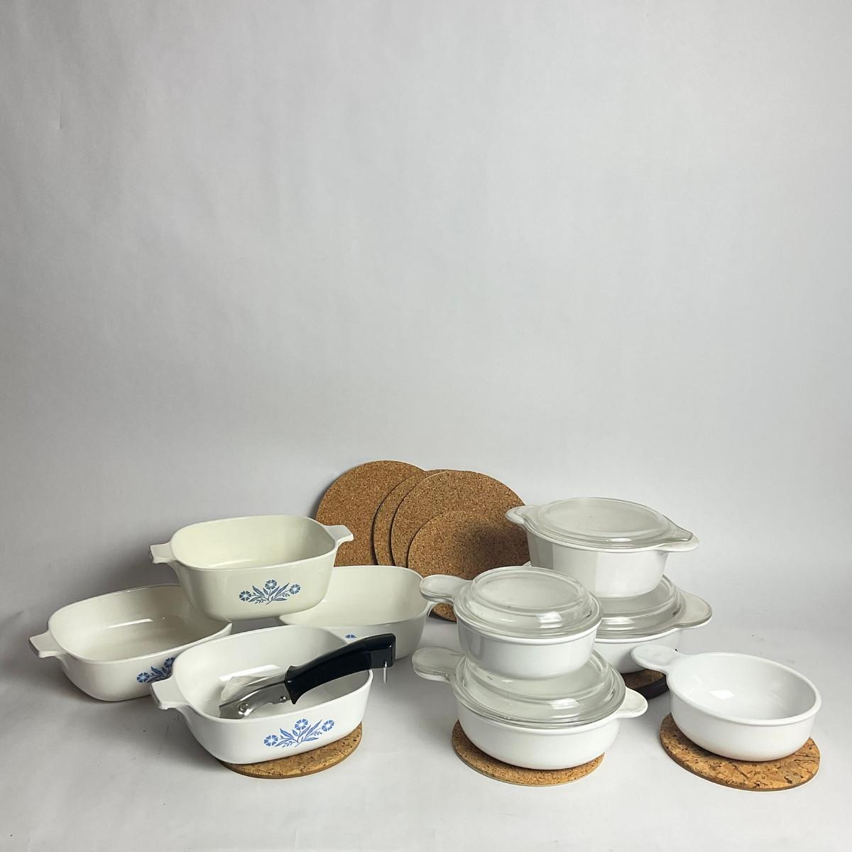 Four Corn Flower Dishes and Pyroceram grab it dishes