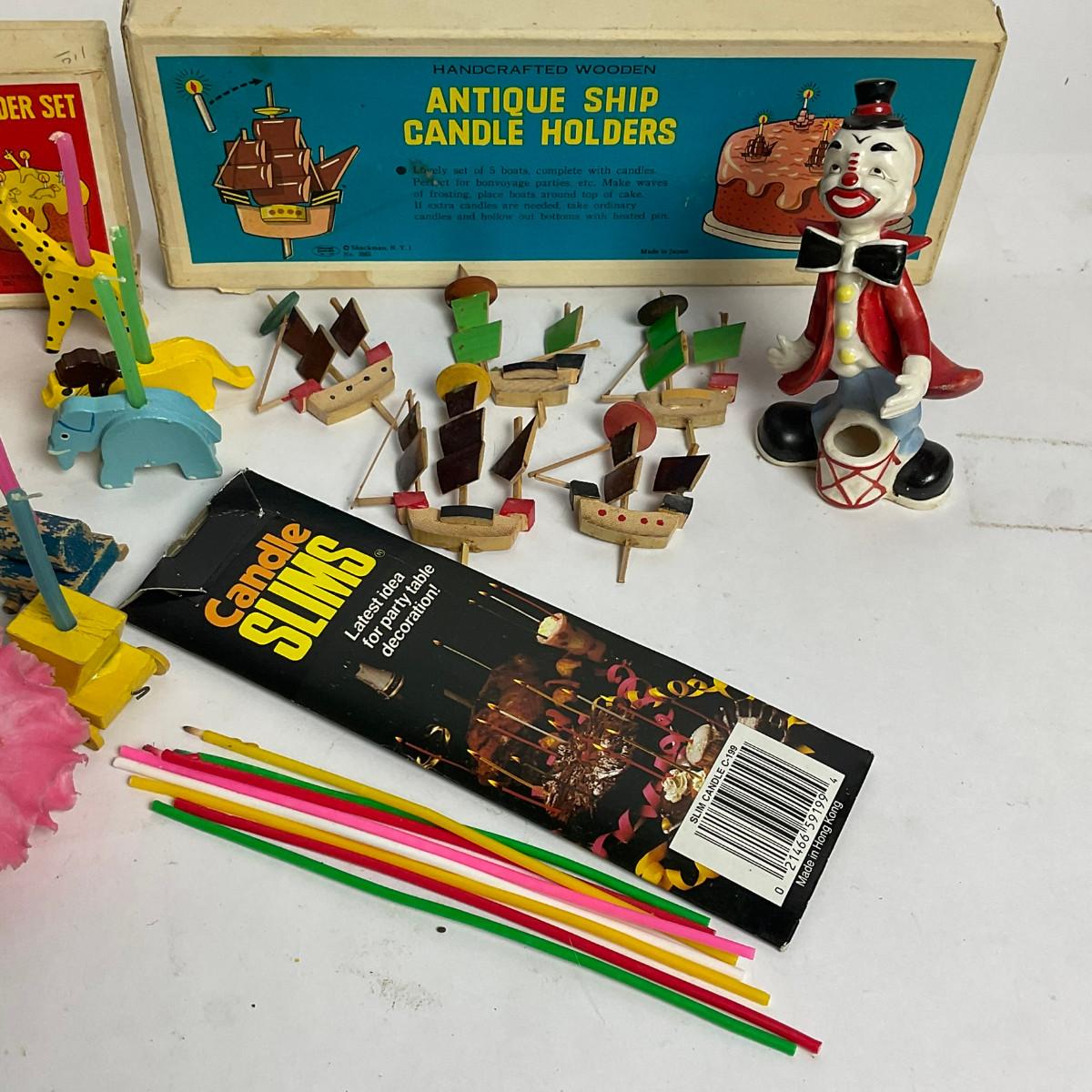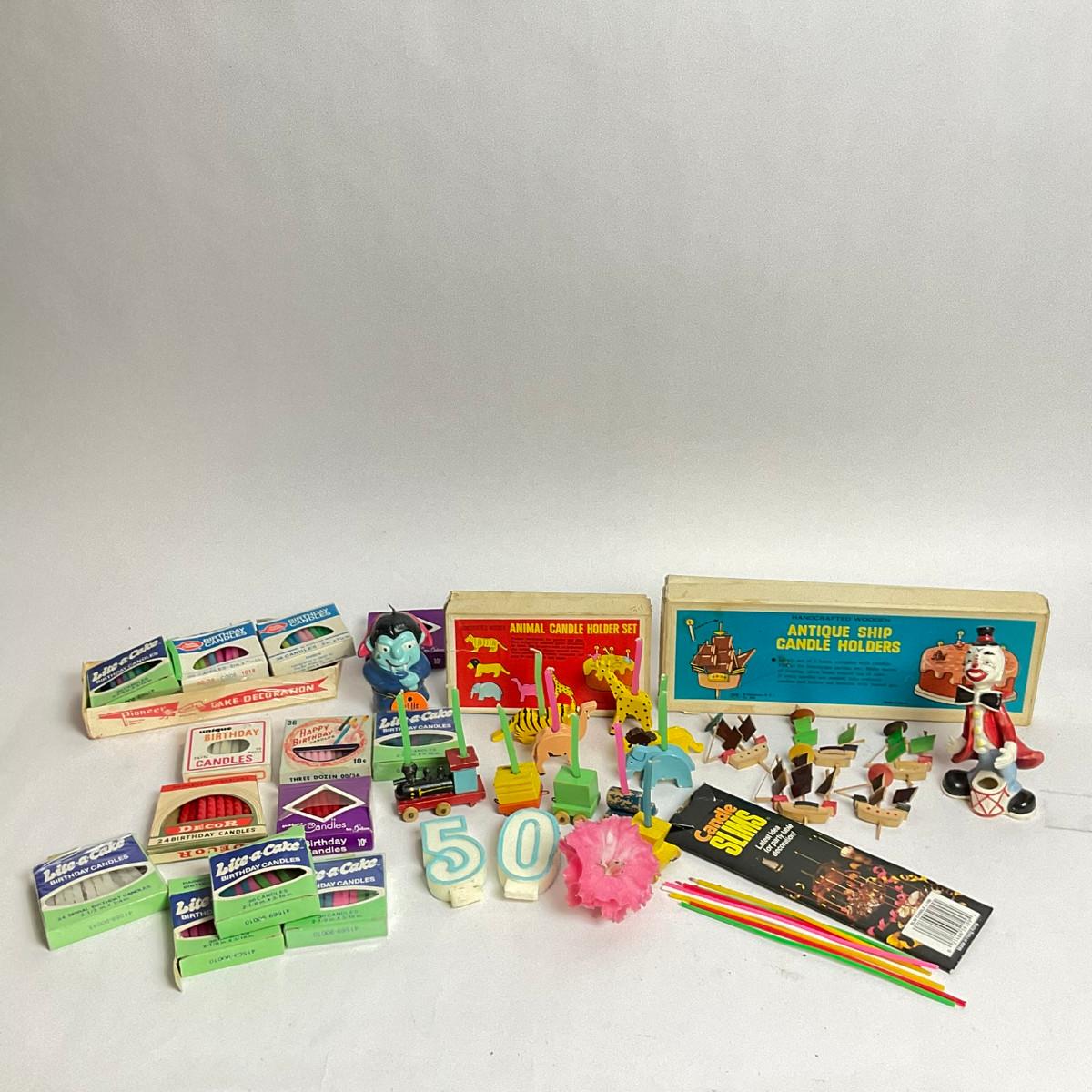 G957 Vintage Candle Holders With Vintage Birthday Candle Lot