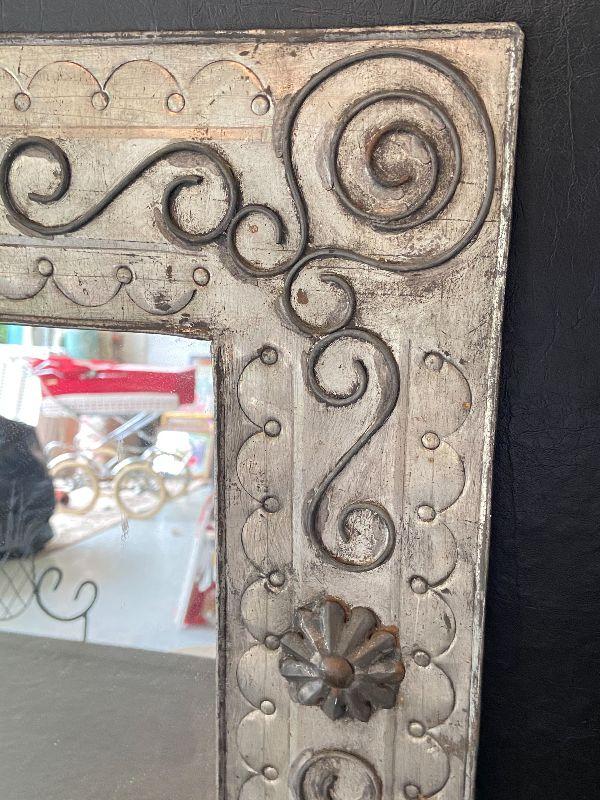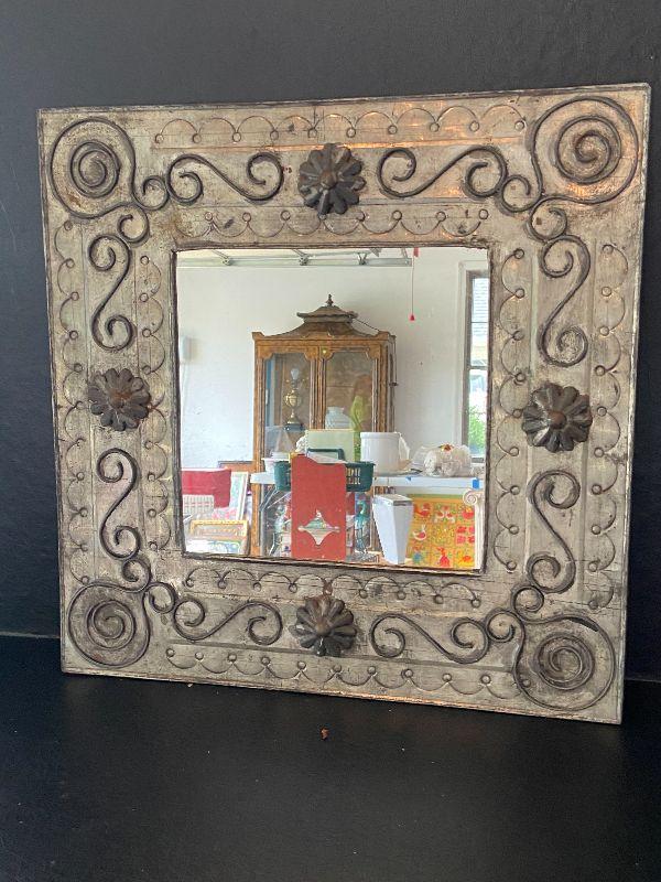 G97:  Galvenized Tin Square Mirror and Metal Tidbit Caddy