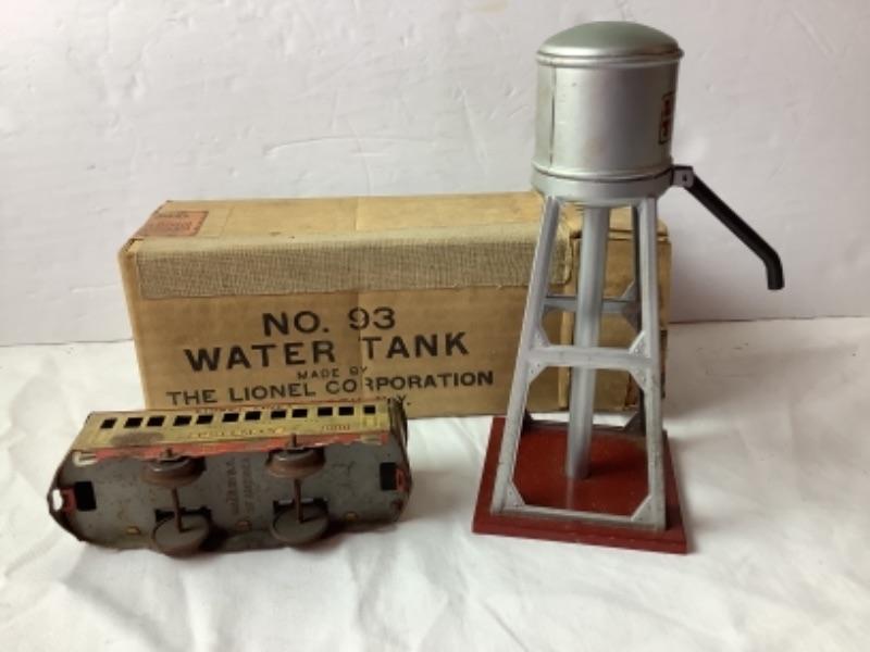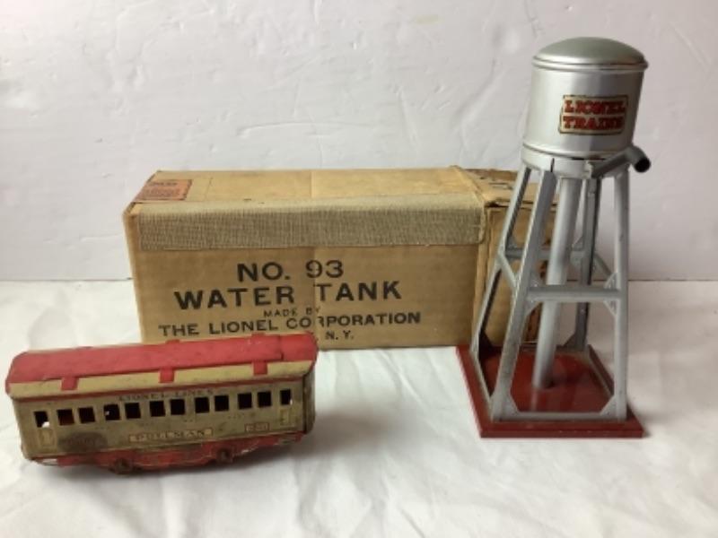 Pre-war Lionel Trains Water Tank No.93 in original box. Pre-war Lionel Trains tinplate Pullman Passenger Car No.1811