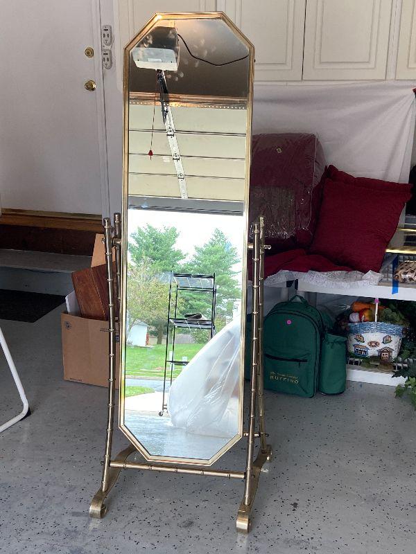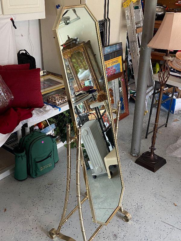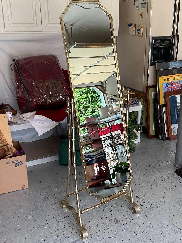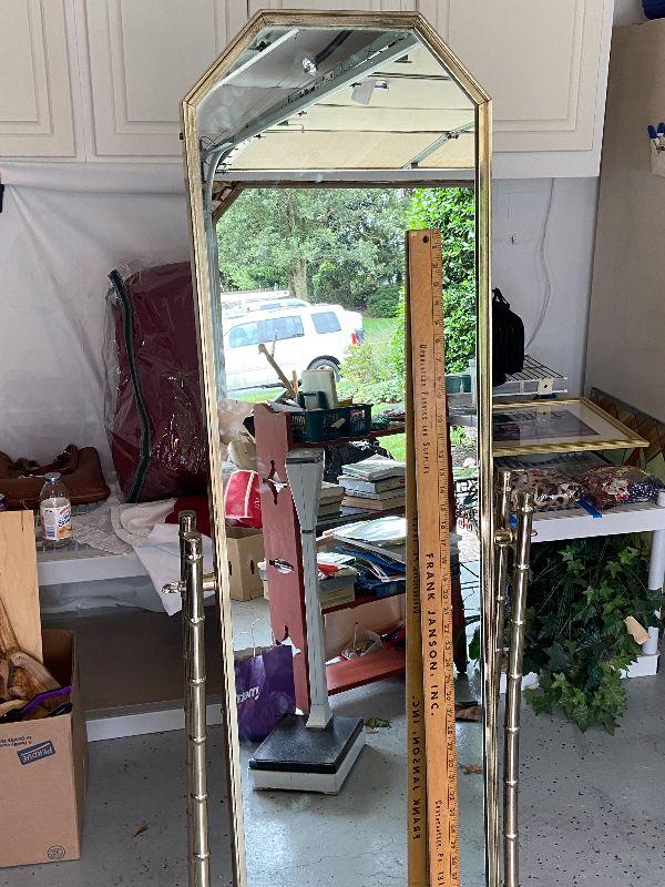 This vintage mirror is so cool, but definitely could use an upcycle on the metal. The metal trim has scratches and shows wear. Please see pics for the condition and size. Thank you for looking and have fun bidding.