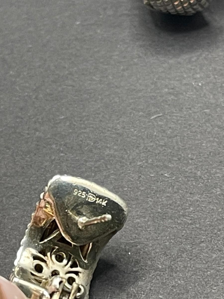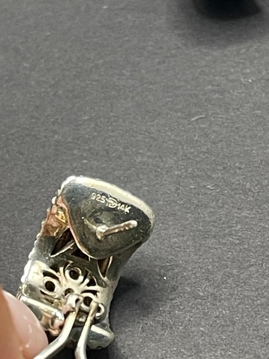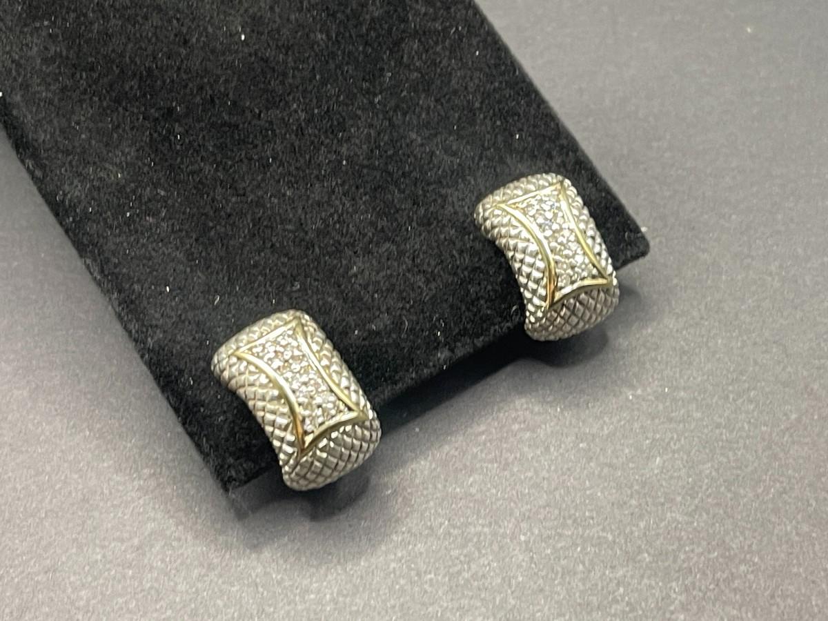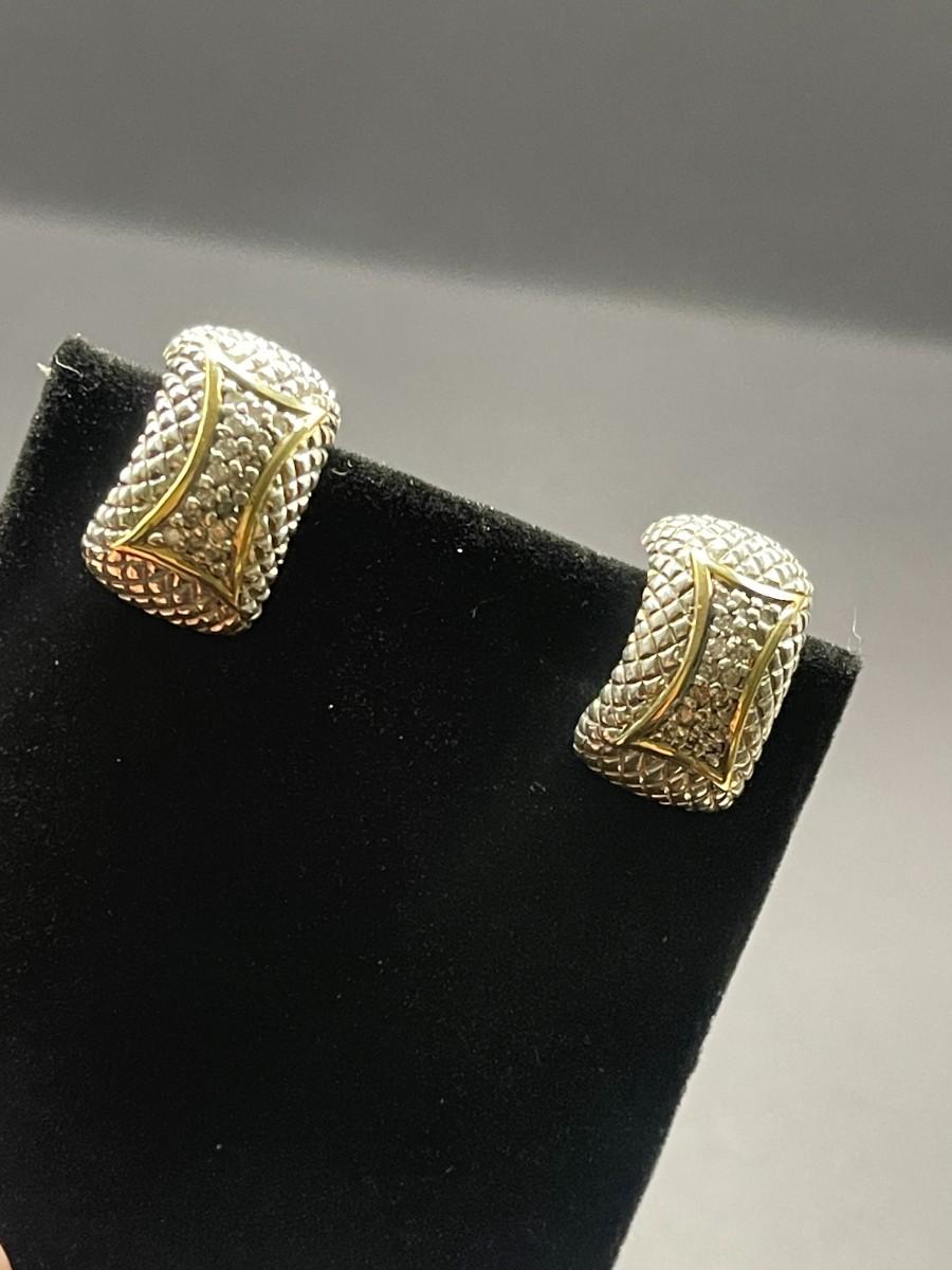 Gabrielle Bruni diamond drop earings set in sterling silver with 14K gold accents. Marked 925 and 14K. Diamonds are J-MI 3