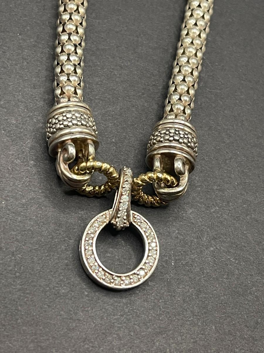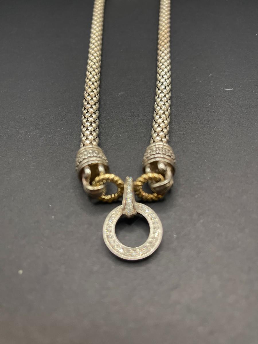 Gabrielle Bruni sterling and 14K gold necklace. Diamond highlights. 18" necklace. Good condition.