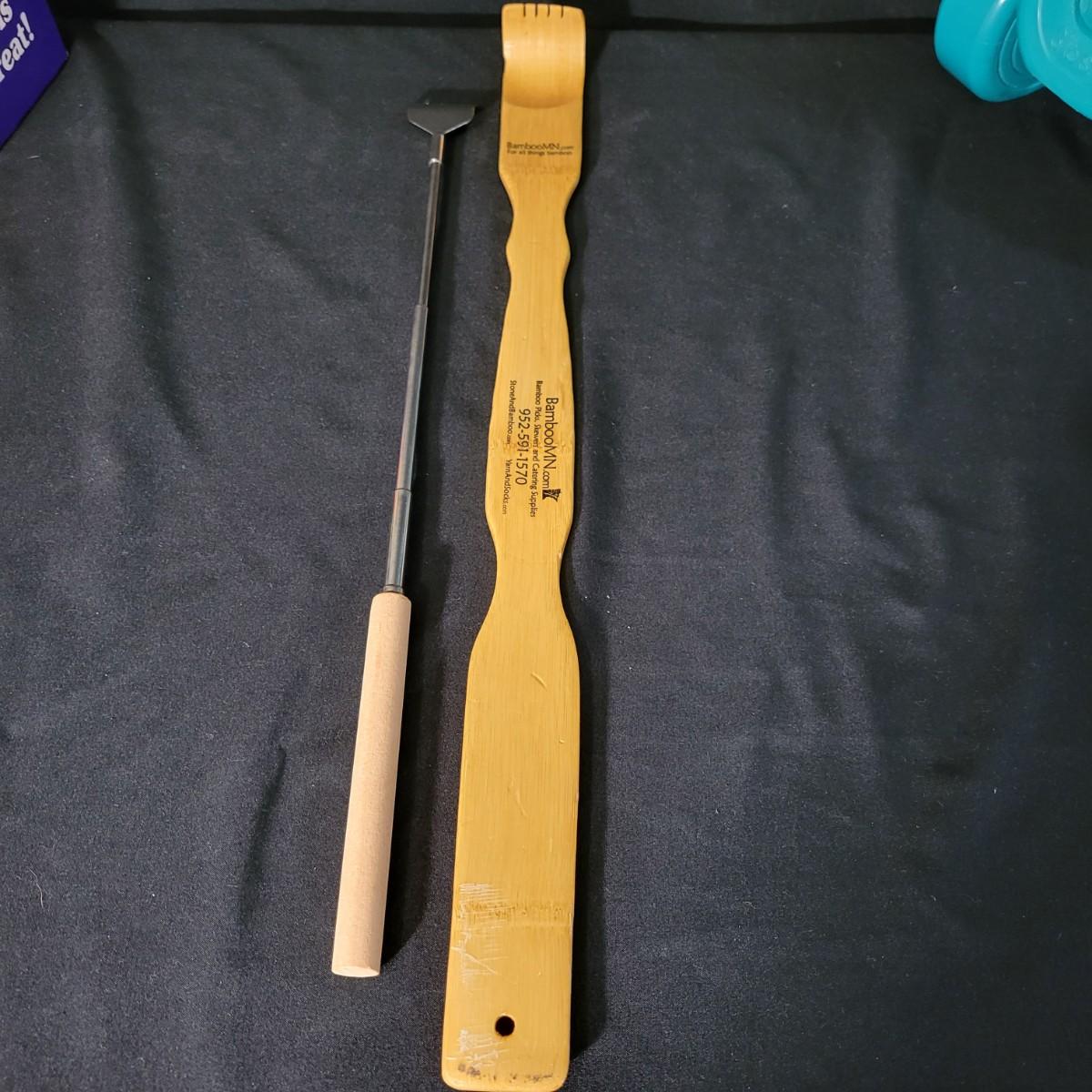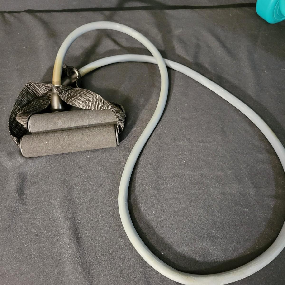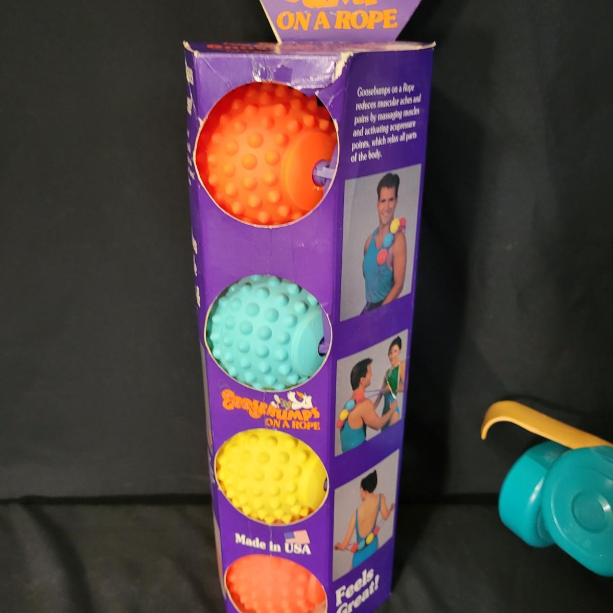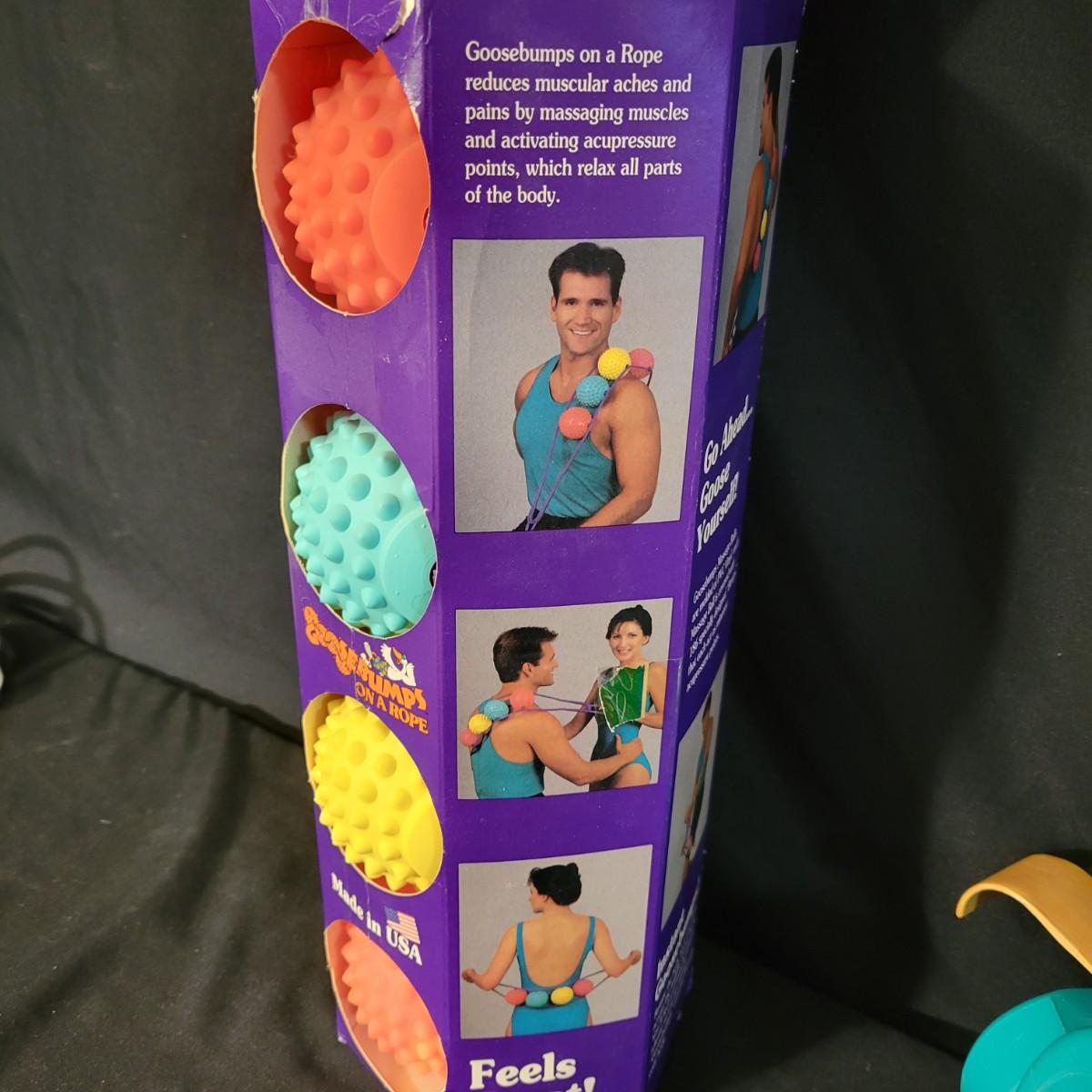 A collection of self care equipment in good condition with no notable damage. Included is a Blueridge heated cushion that was tested and works. A Gaiam foot roller that is battery powered and untested. Also included are a pair of 3lb weights, Goosebumps massaging balls, two back scratches, a power band with handles and a jump rope. Heated seat pad measures approximately 15.5" x 15" x 2" Shipping available