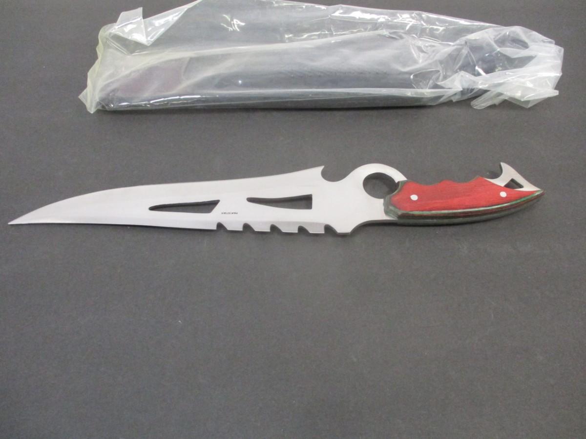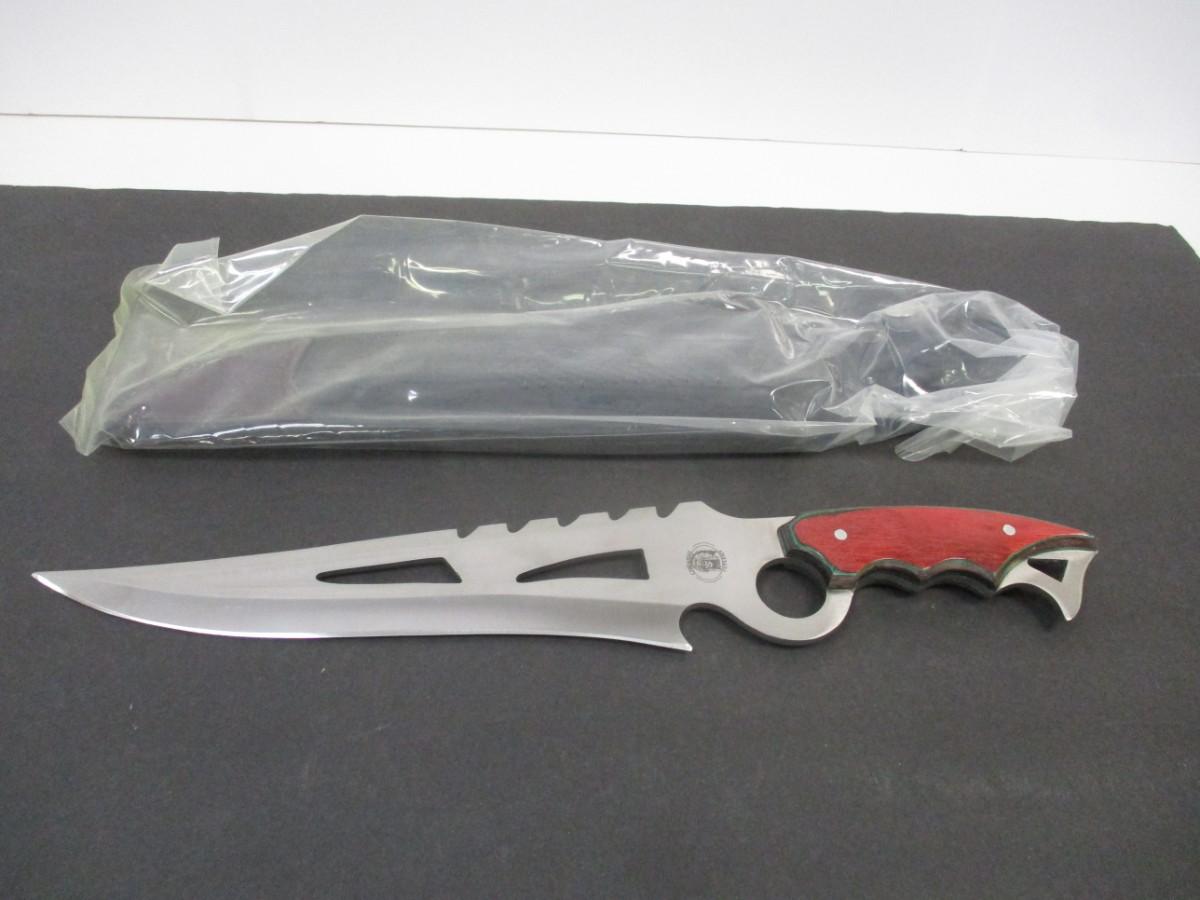 Galactic Starfighter II 16.5" Chip-away Frost Cutlery Knife Steel Blade Hunting Knife Wood Handle With Genuine Leather Sheath