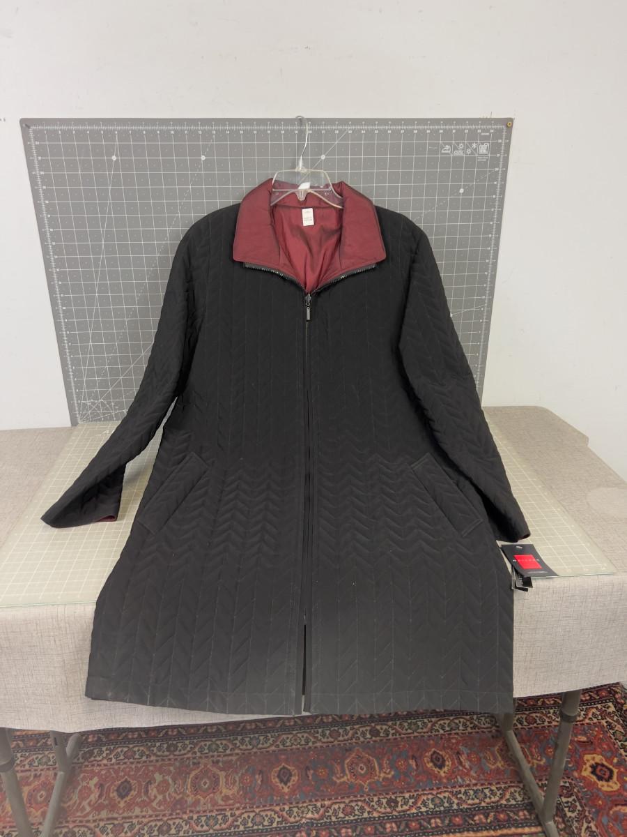 Gallery Small Black and Burgundy Reversible Pea Coat