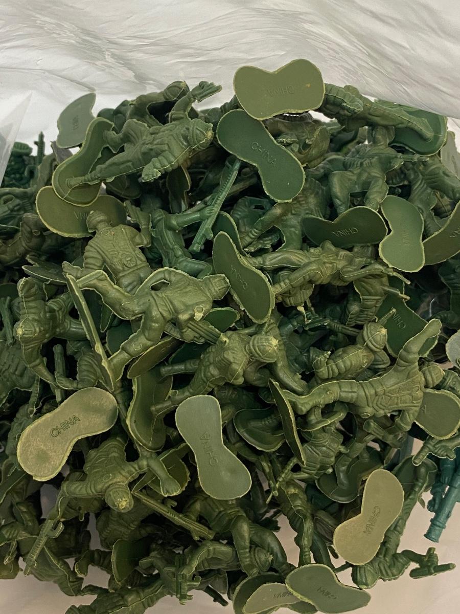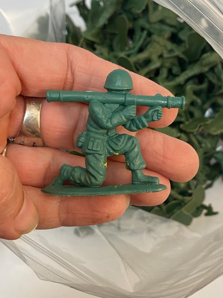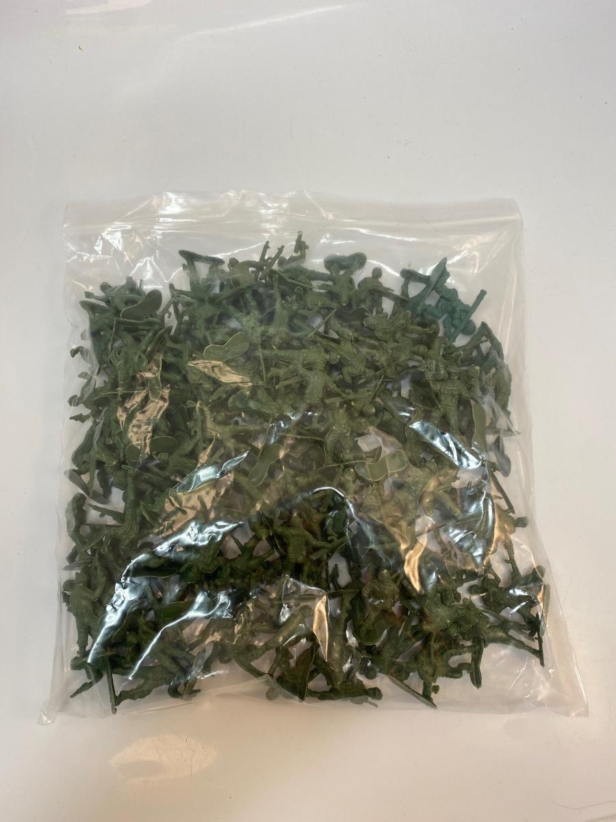Gallon Sized Bag of Plastic Green Army Men. Classic green army men in various combat poses.