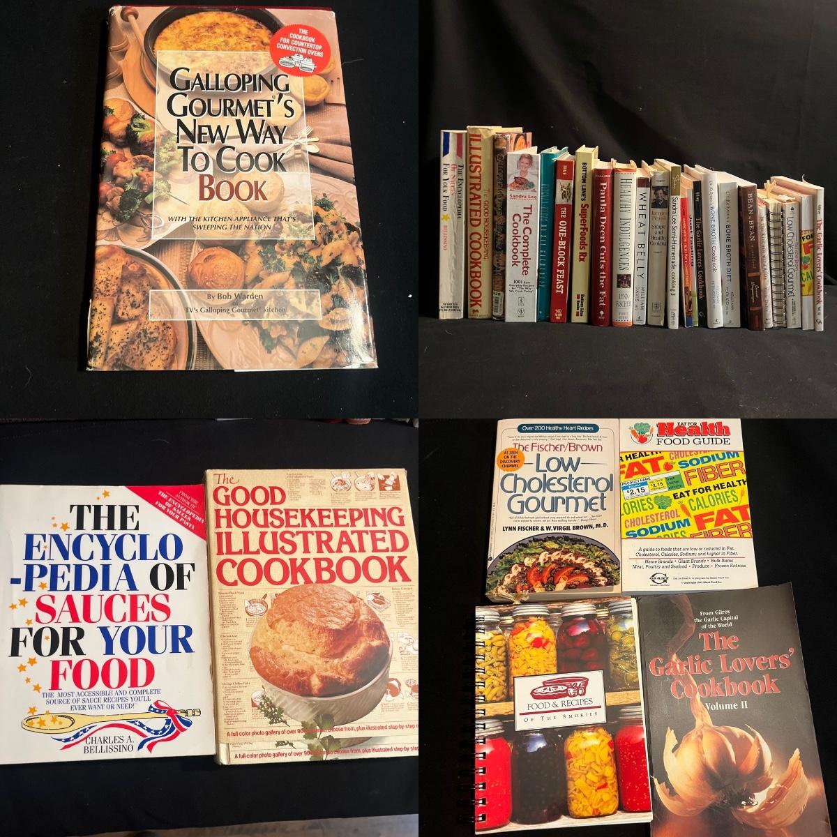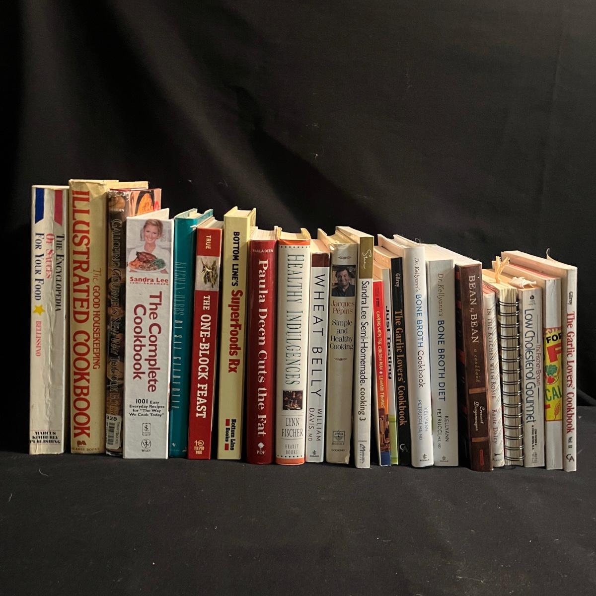 Lot includes Bone Broth, Galloping Gourmet, Garlic Lovers, Good Housekeeping and more cookbooks. Over 20 cookbooks included.