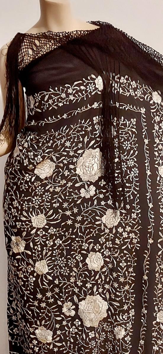 Truly Amazing this was turned into a One shoulder dress holding shoulder with a Brooch. All amazing hand Embroidery Spanish Abtique Manila.