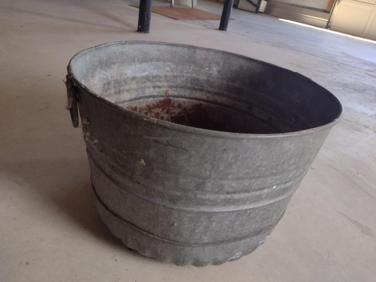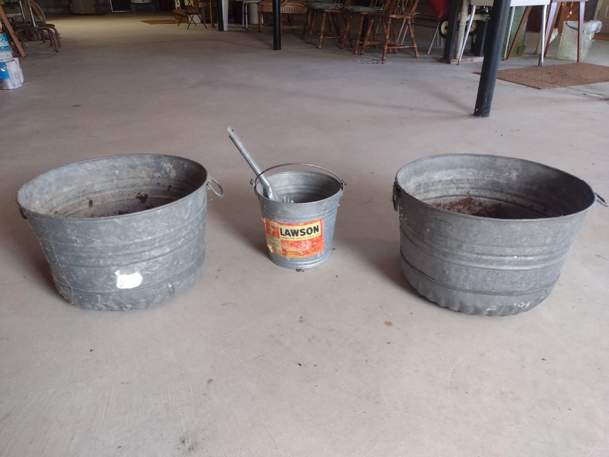 Set of Galvanized Buckets. Larger buckets have pinholes and rust in bottom side.