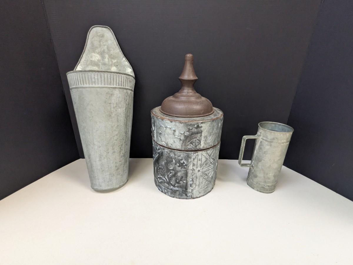 Galvanized Flower Holder - 2 Piece Canister - Mug