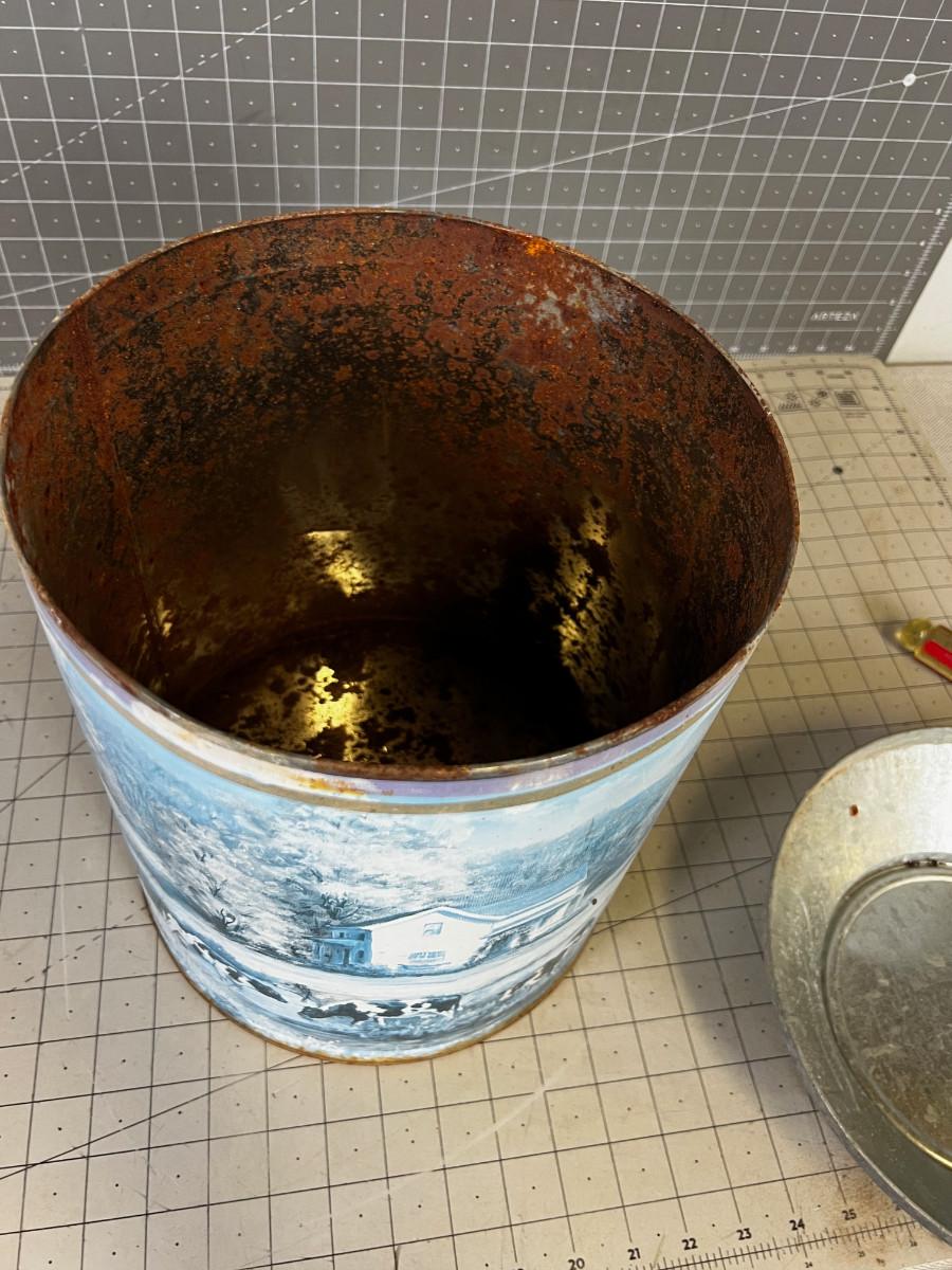A bid fusty on the inside. Blue colors. 14" Tall