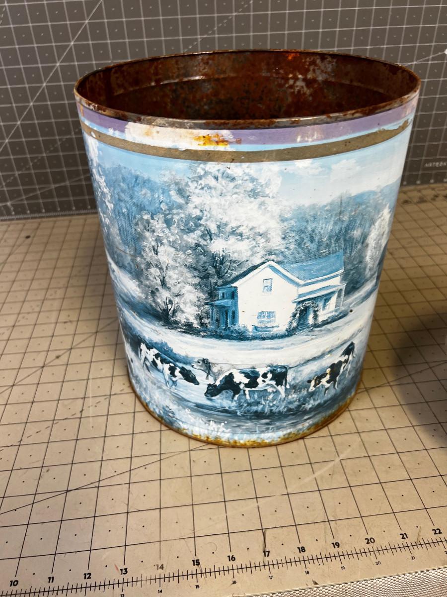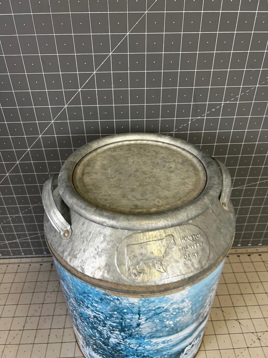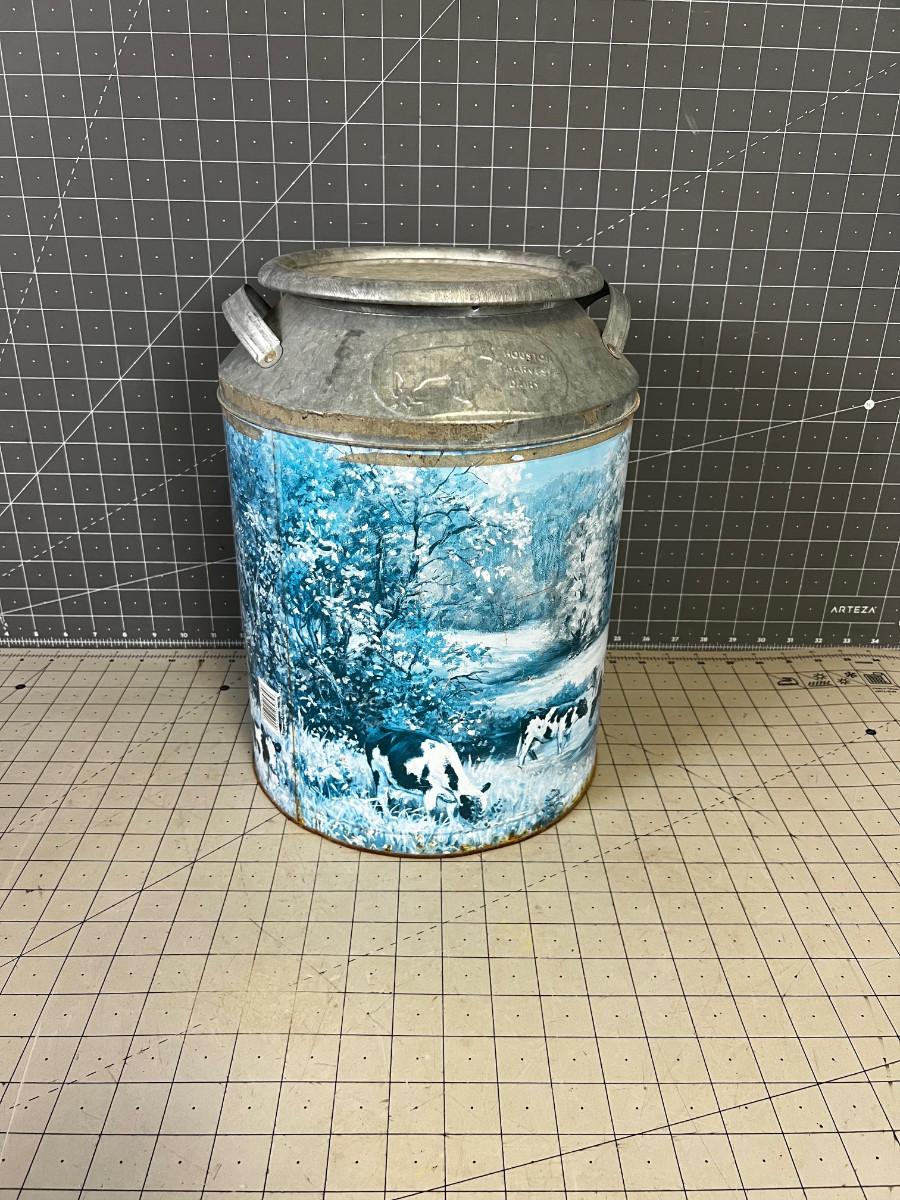 Galvanized Tin Milk Bucket with a lid - Painted Farm Yard Cows