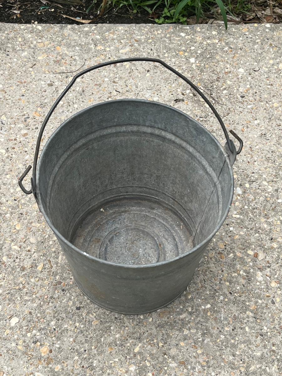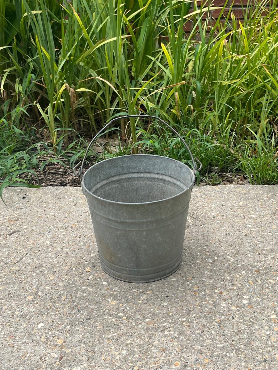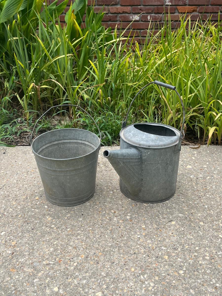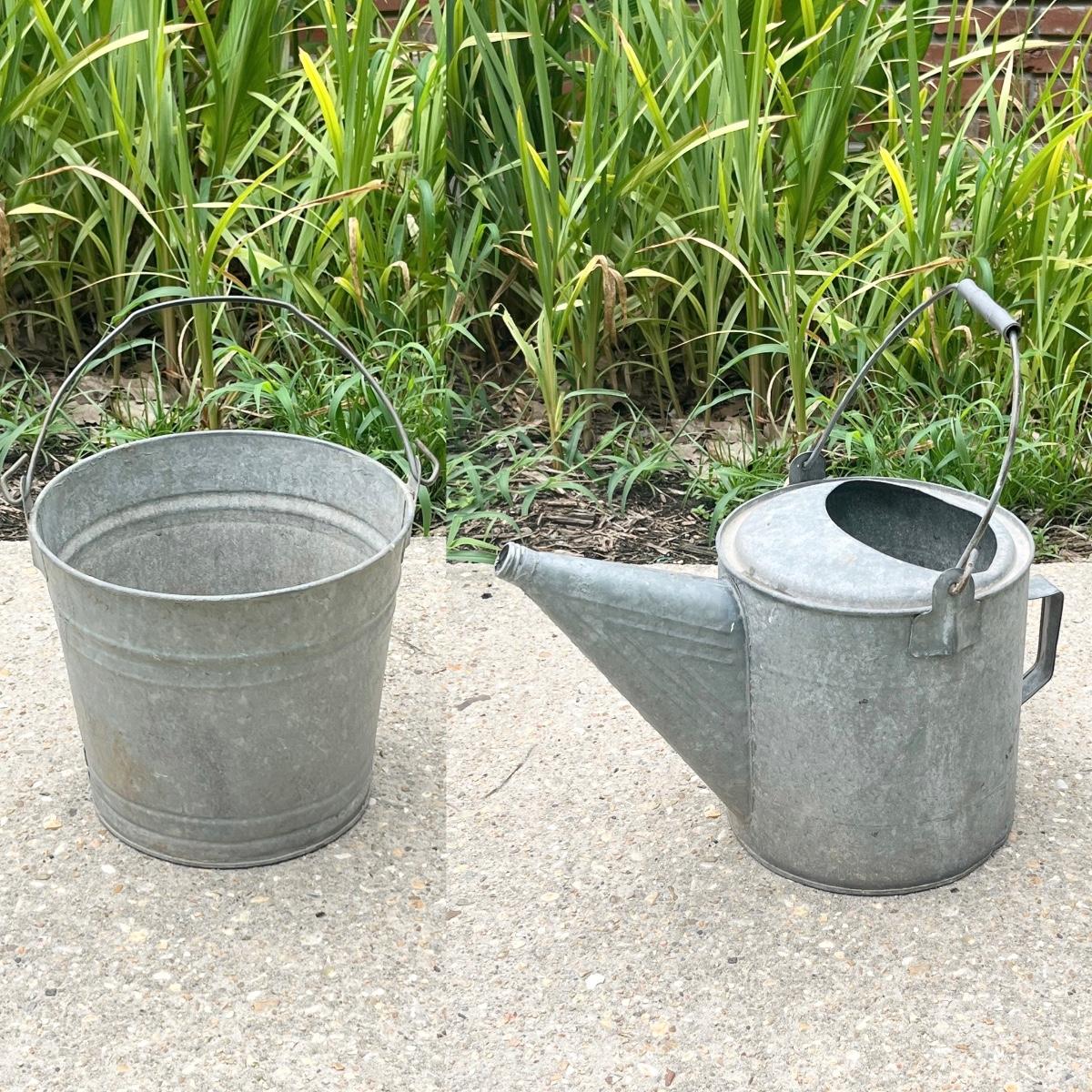 Bucket measures 8” H x 10” round ~ Watering can measures 10” H x 9.5” round