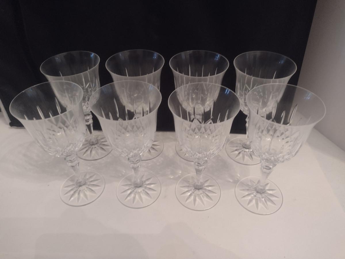 Galway Irish Crystal Water Goblets- Possibly Longford Pattern- Eight Pieces