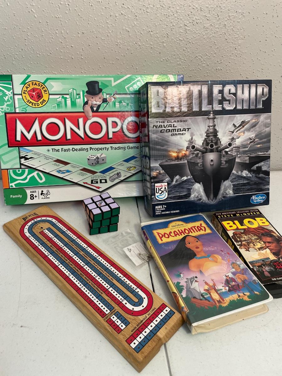 Games, including Monopoly, Battleship, Rubiks cube and more