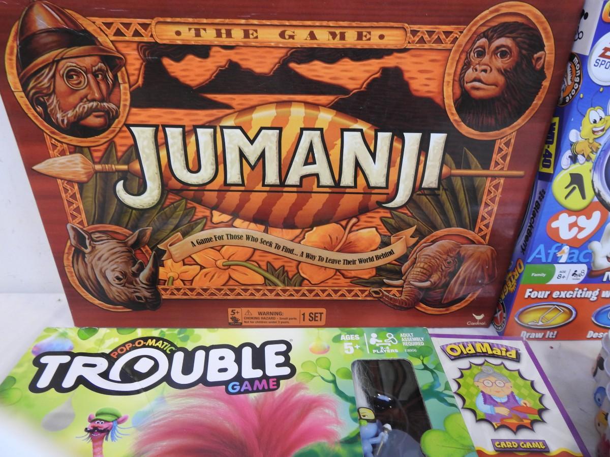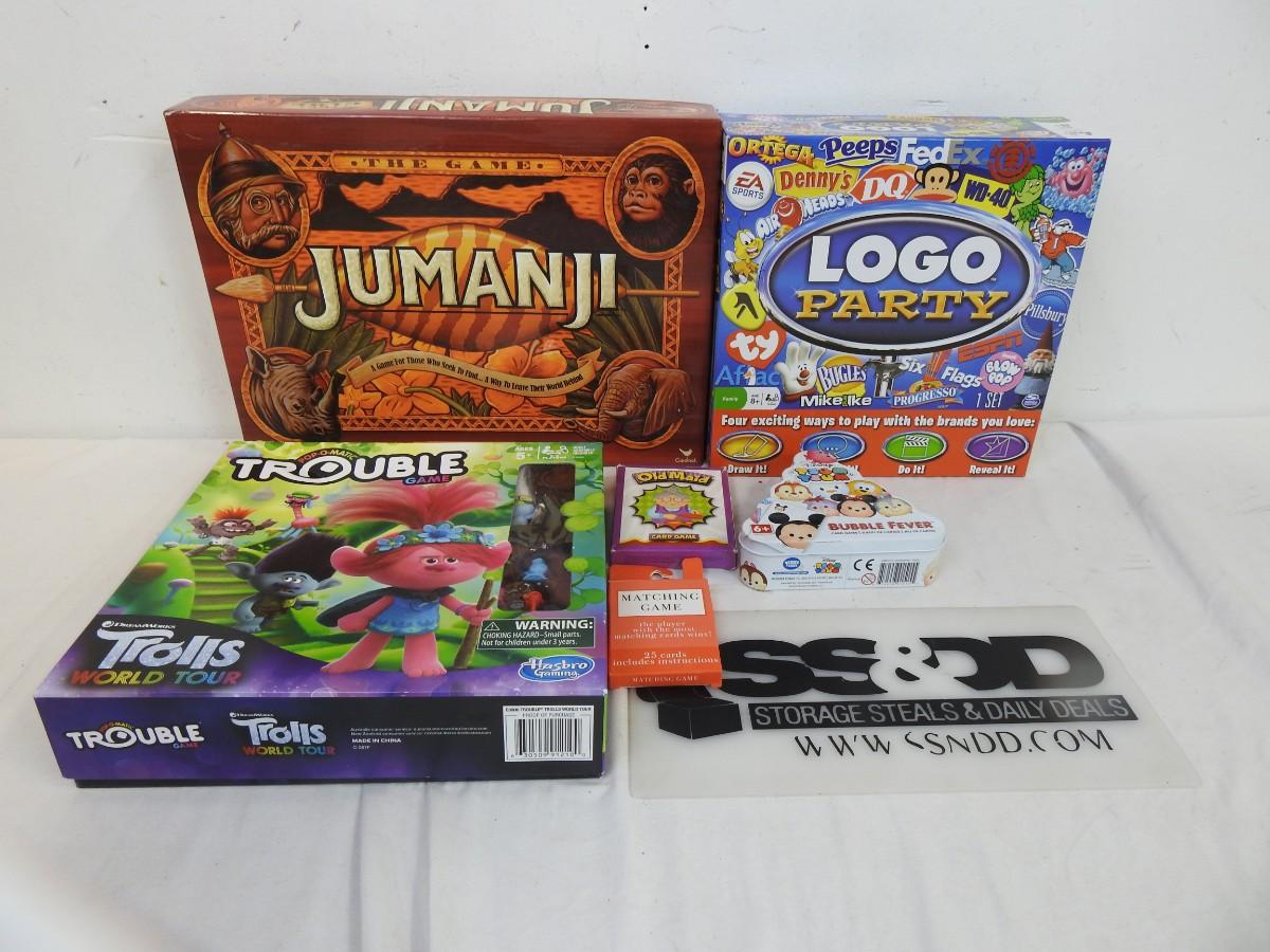 Game lot: 3 board games, Jumanji, Logo Party, Trolls Trouble, 3 card games, Disney Bubble Fever