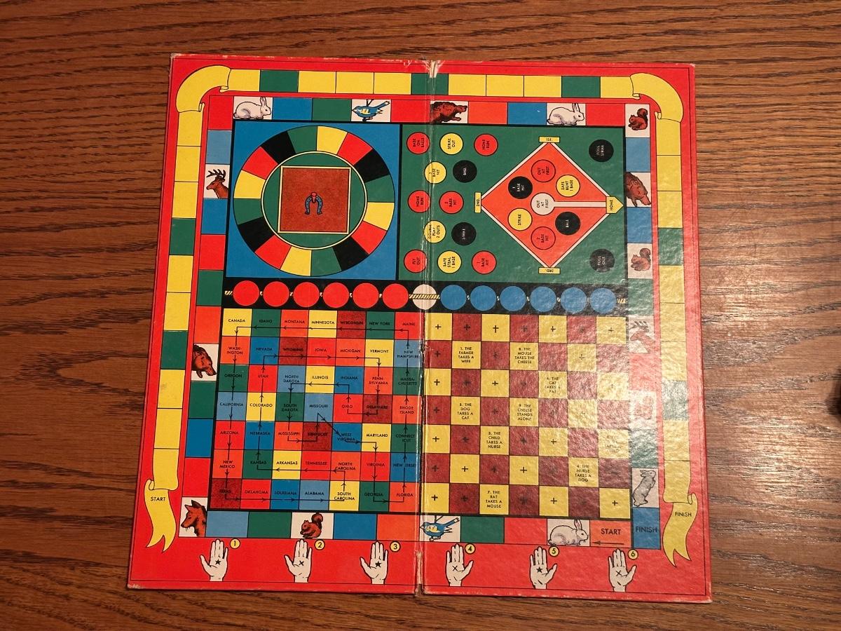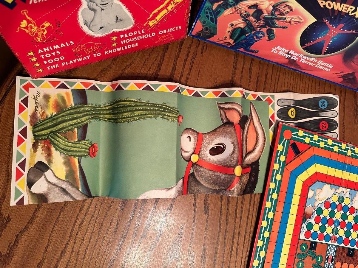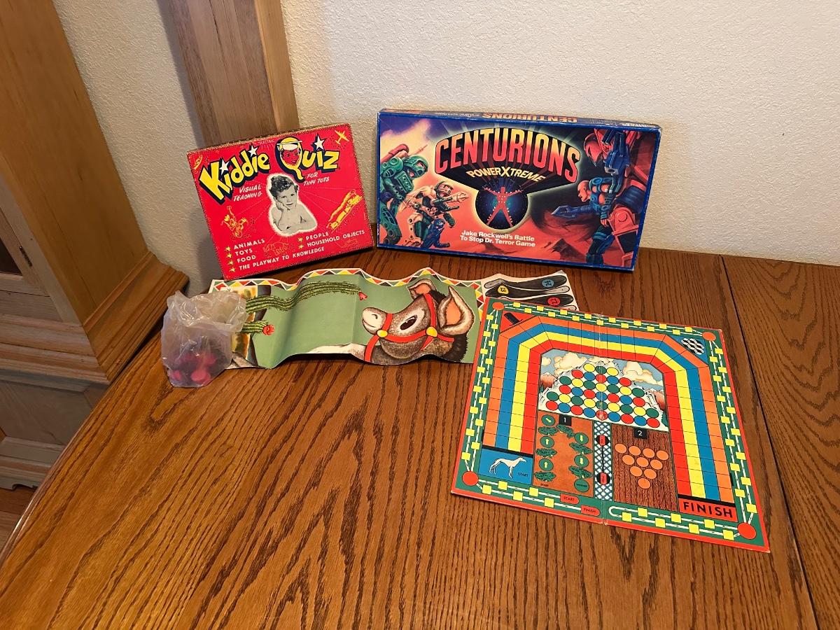 1930’s GAME BOARD “40 GAMES BOX” PIN THE TAIL ON THE DONKEY, KIDDIE QUIZ, & CENTURIONS GAMES