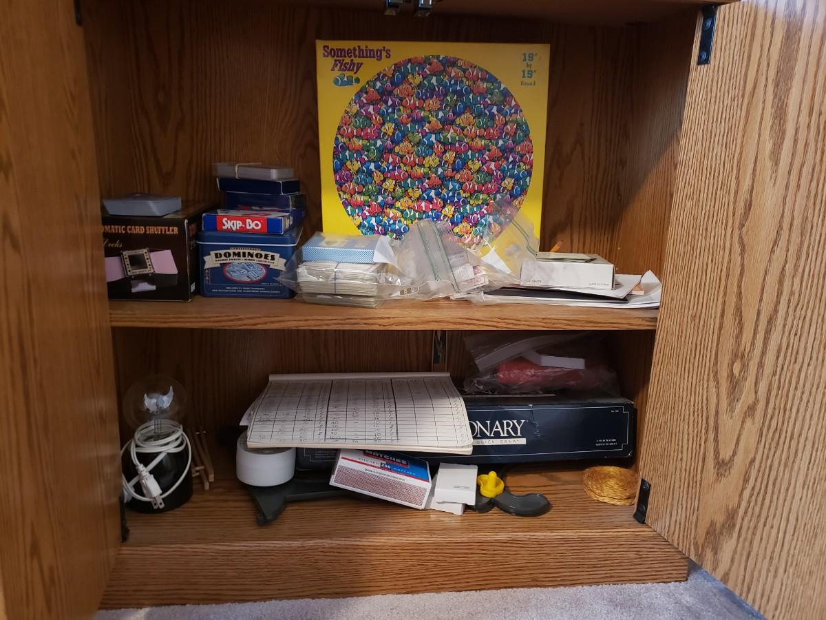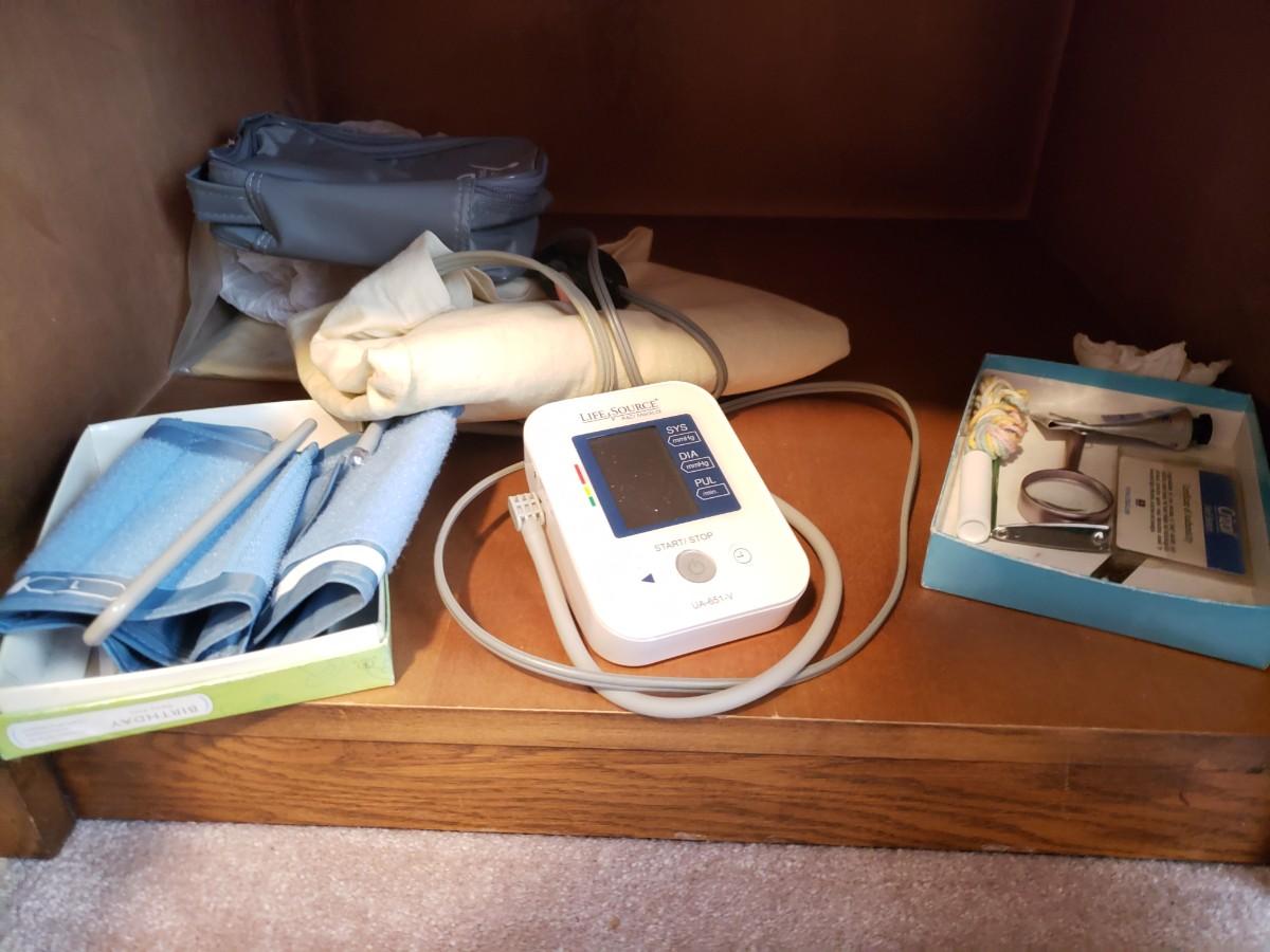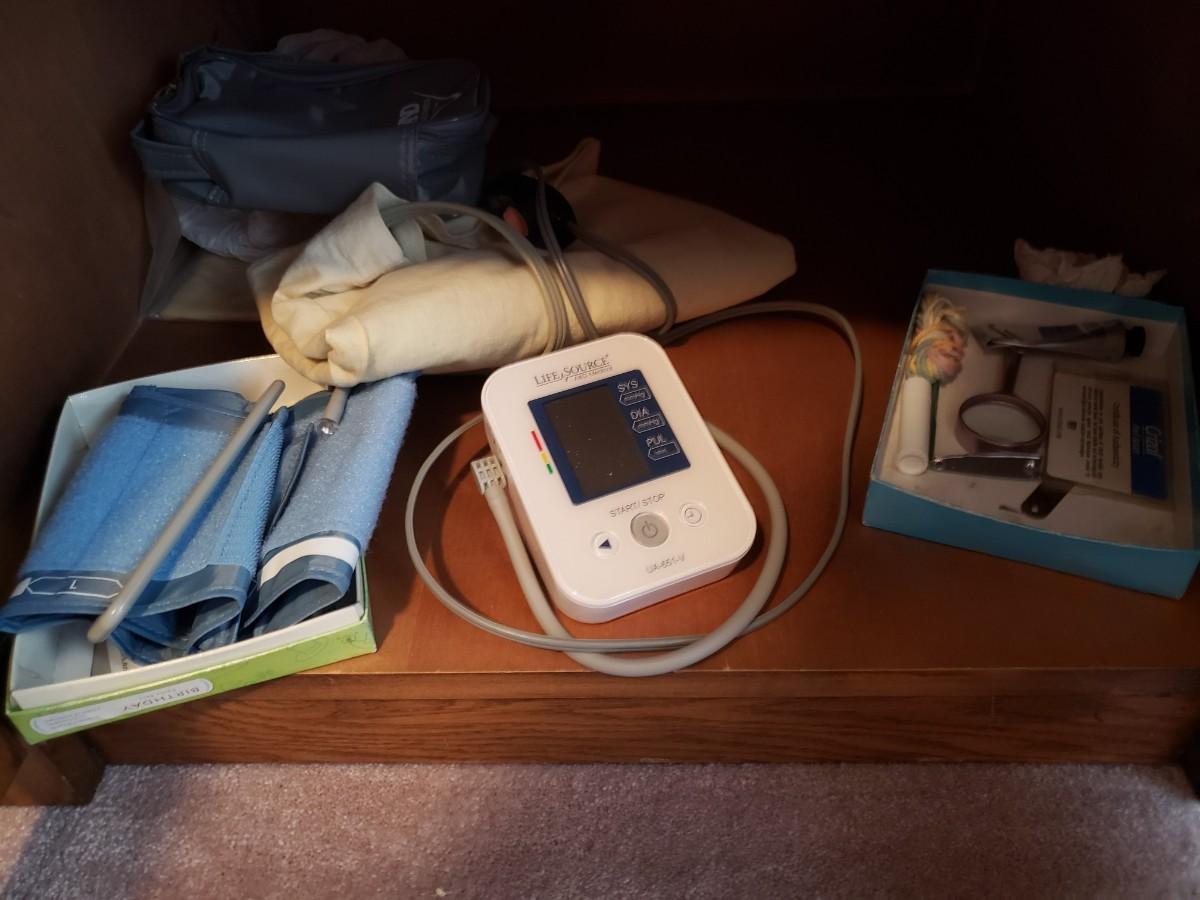 Variety of games and a blood pressure cuff.