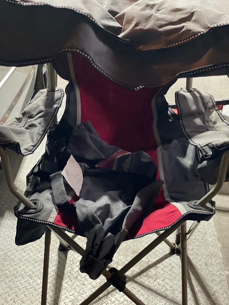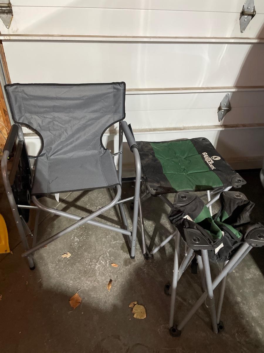 2 green stools, 1 overhead cover chair and one seat with cup holders