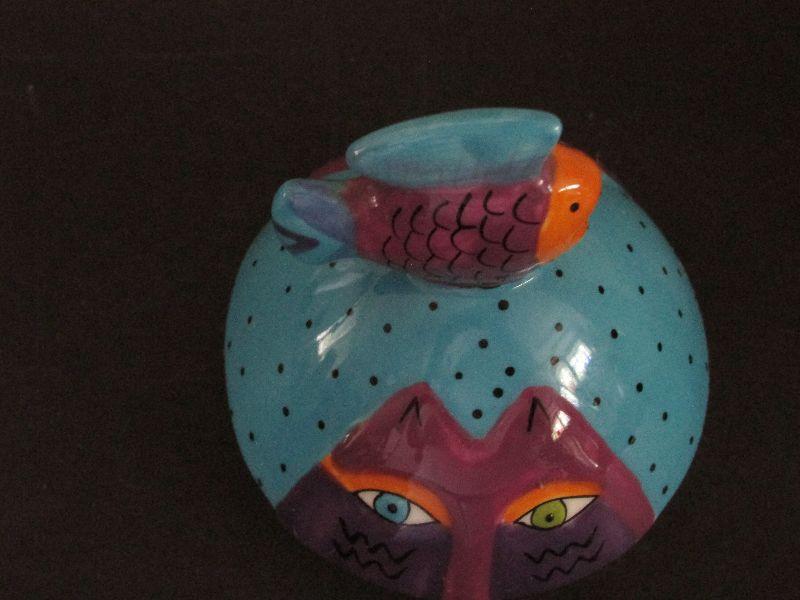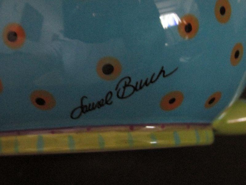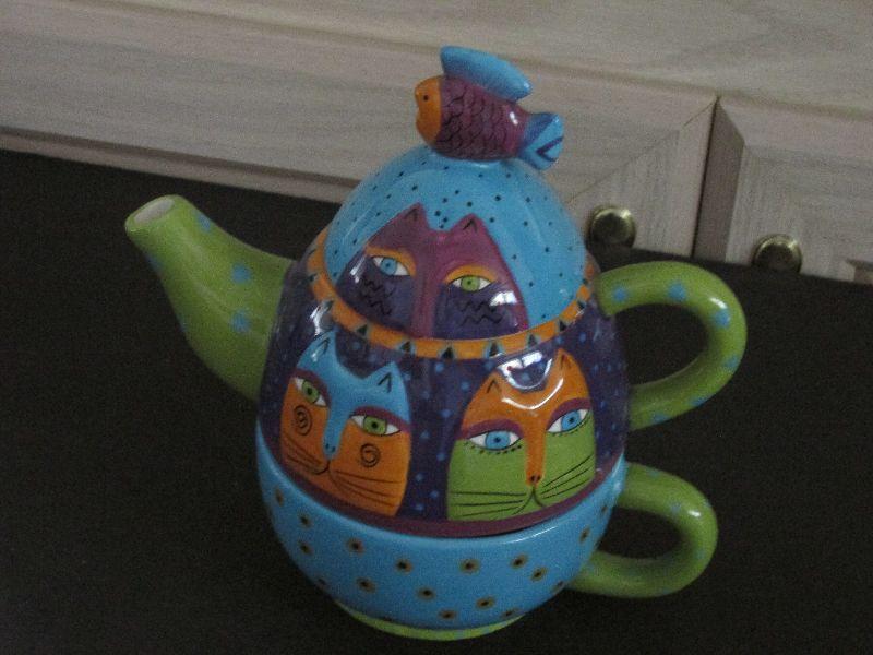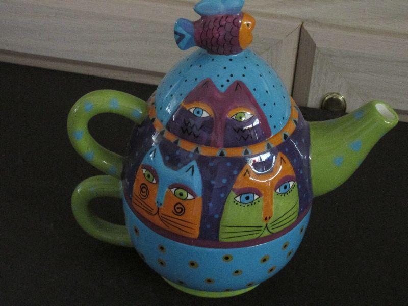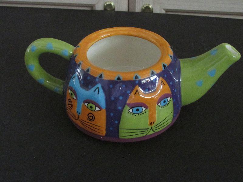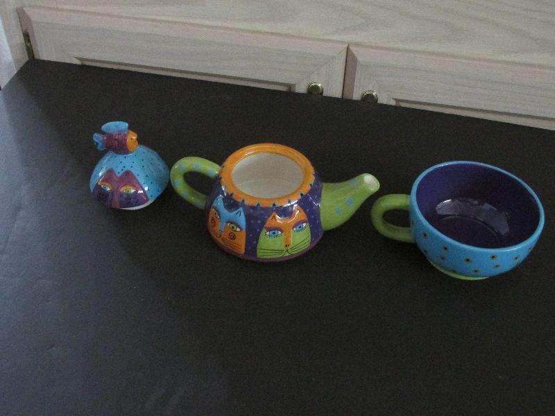 3 Piece Ganz cat themed teapot with signature from Laurel Burch.