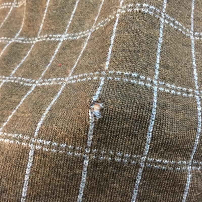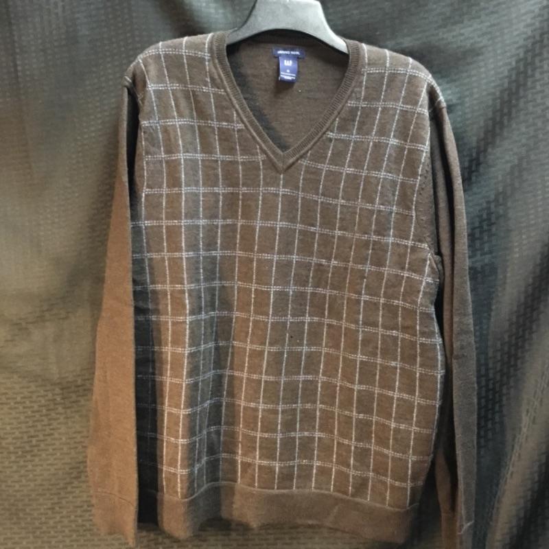 Size adult extra large. This sweater has numerous holes in the front; see pictures.