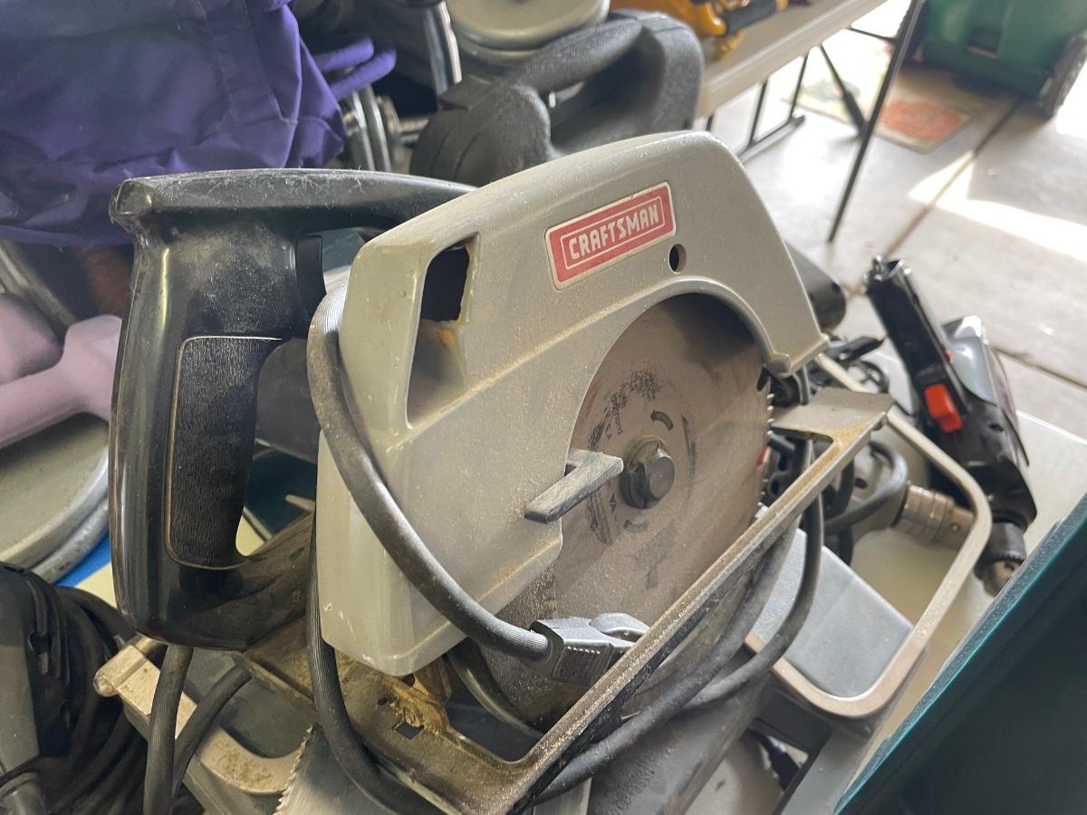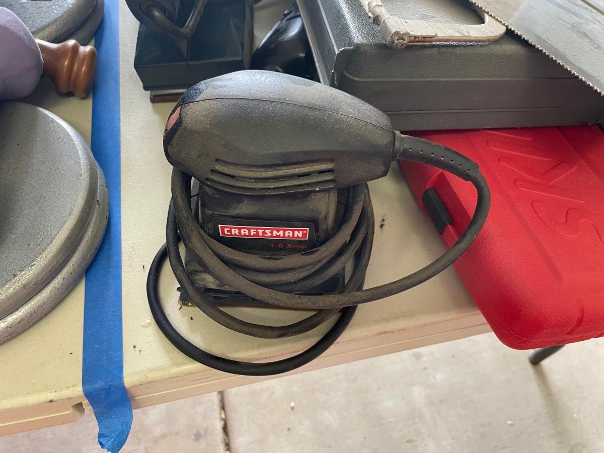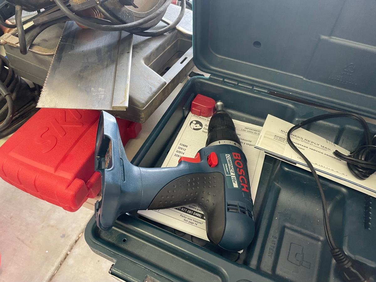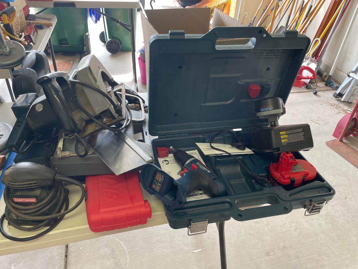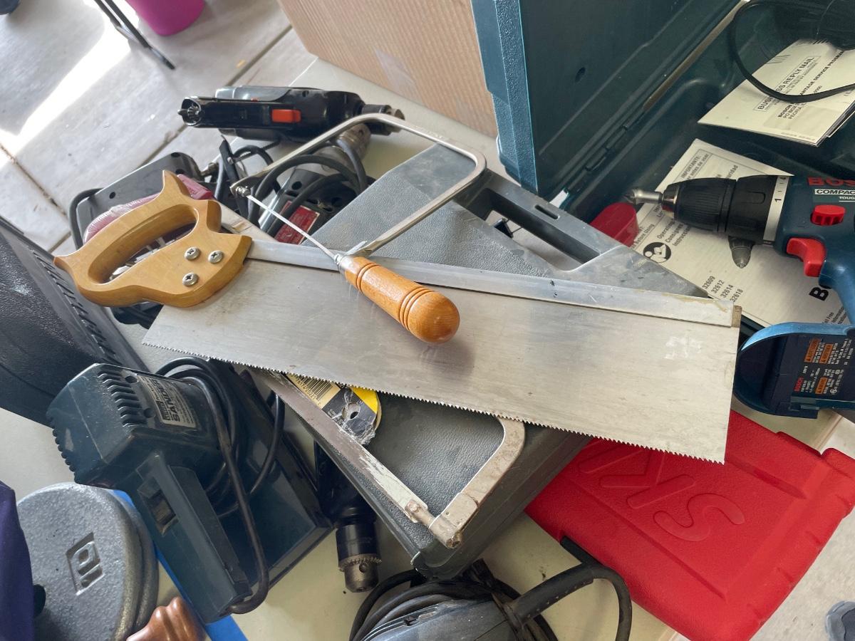 hand saws, Craftsman sander, small hand tools, jigsaw, Bosch compact drill in box and more