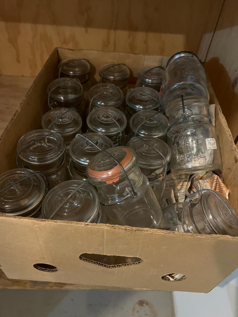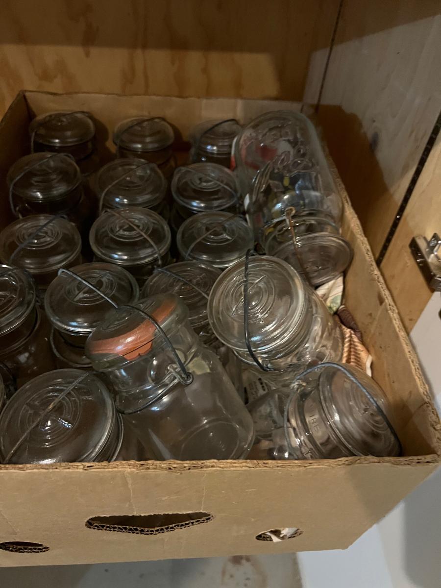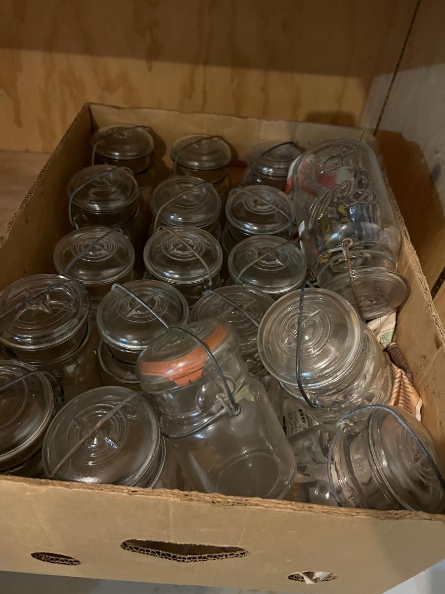 Garage:  18 ANTIQUE Mason Jars with GLASS LIDS