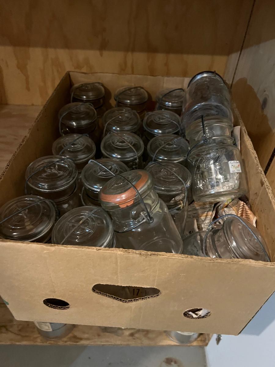 Garage: 18 ANTIQUE Mason Jars with GLASS LIDS