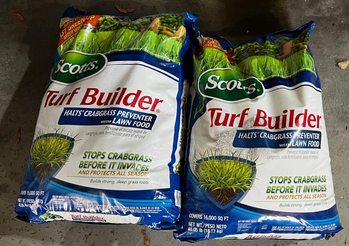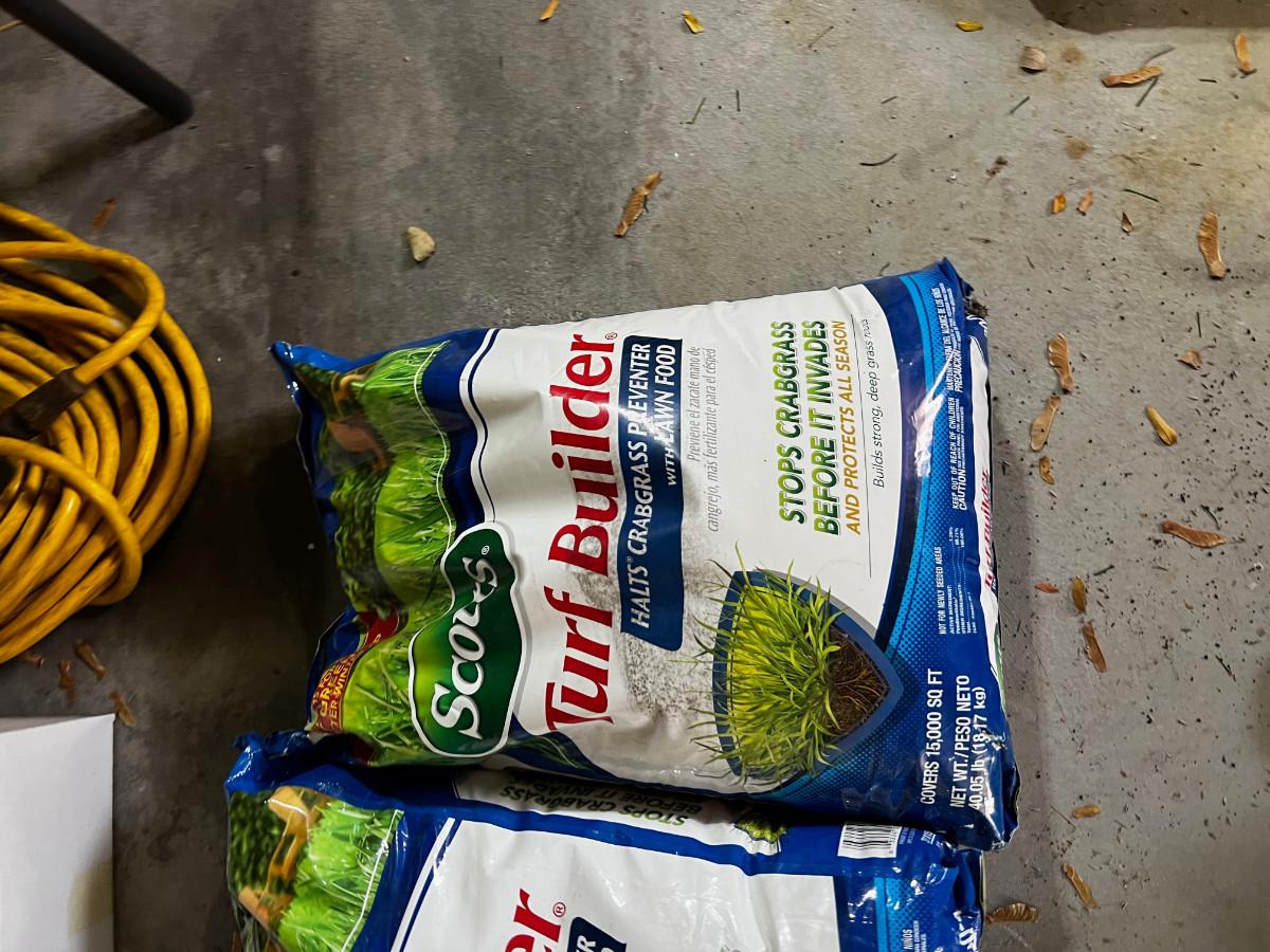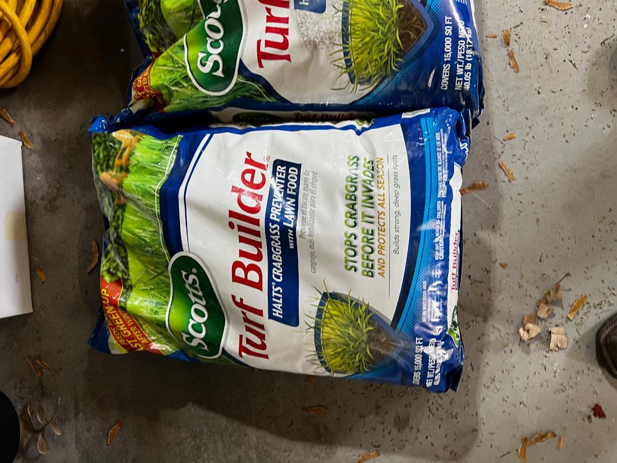 Garage: 2 Bags of Scotts Turf Builder UNOPENED 40 Pounds each