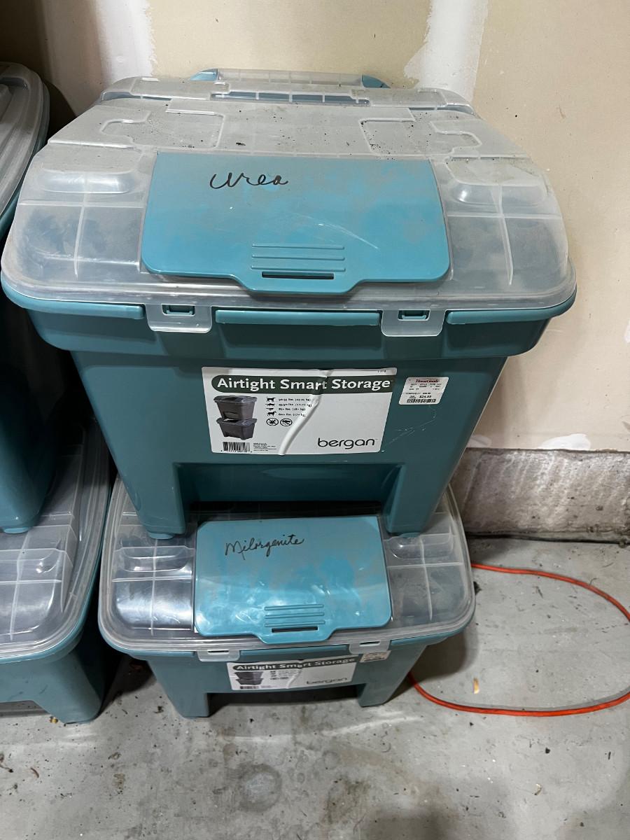 Garage 2 Bins of Fertilizer Uria and Milo Granite