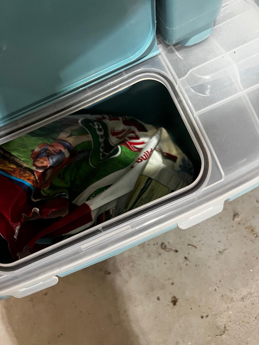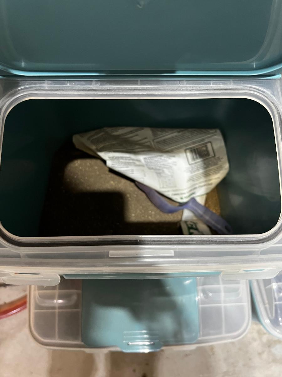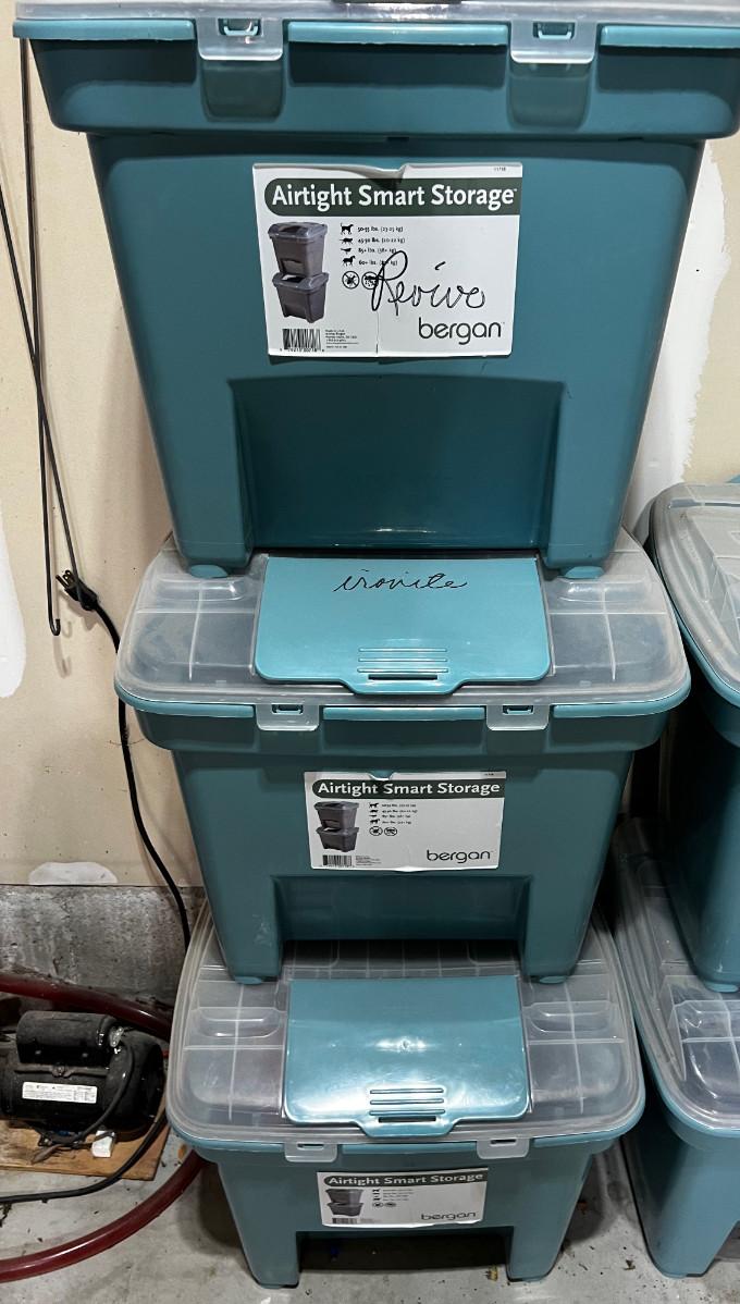 Garage 3 Bins - One Empty, Ironrite, Scots Turf Builder
