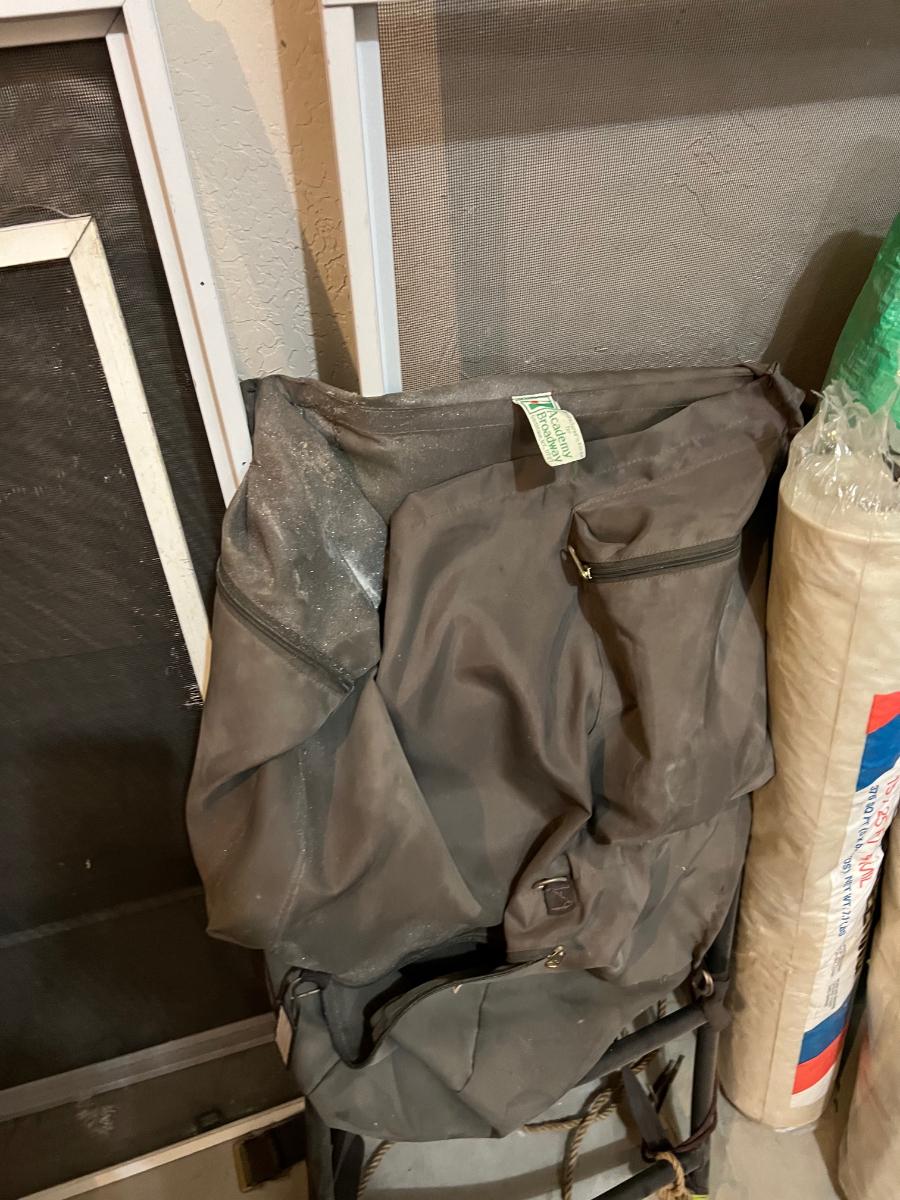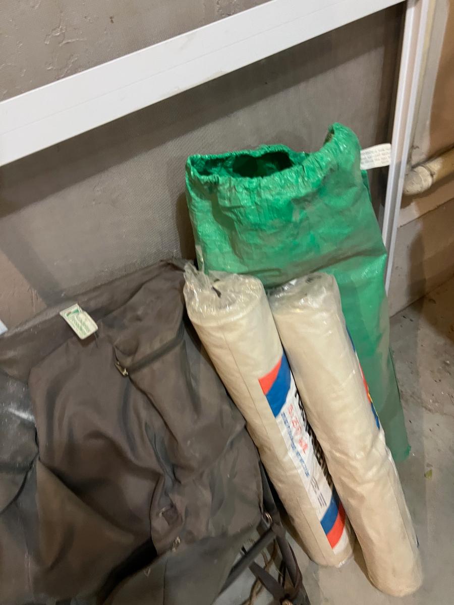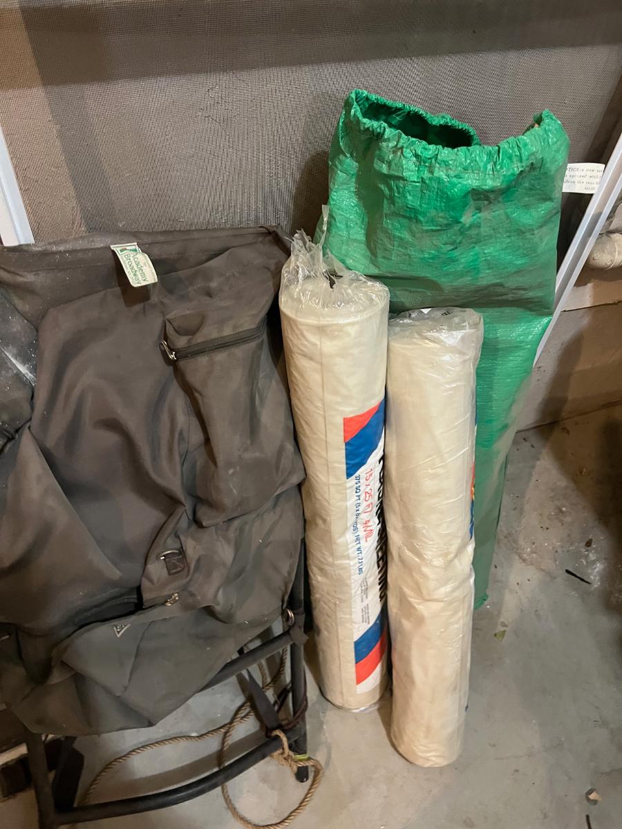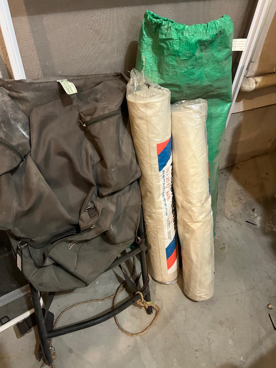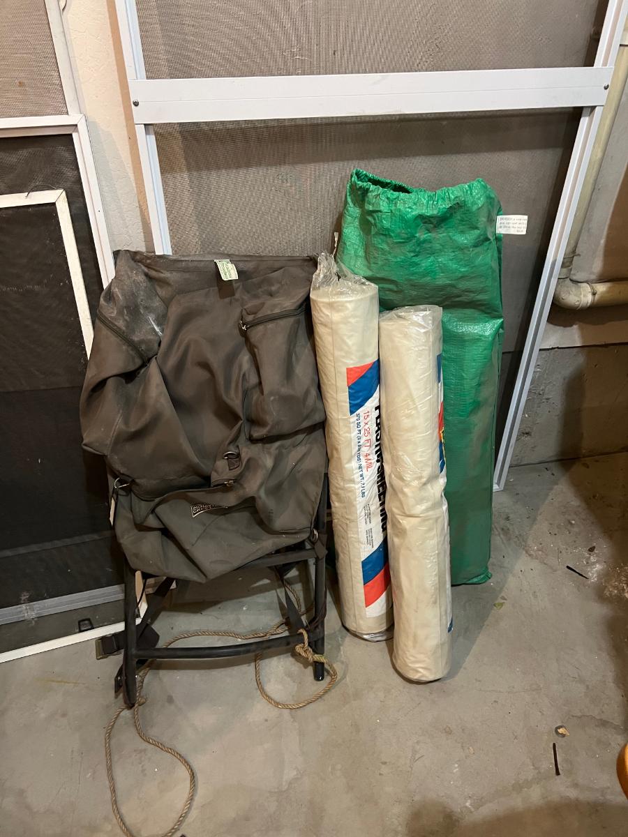 Garage: Back Pack, Plastic Sheeting and Tarps