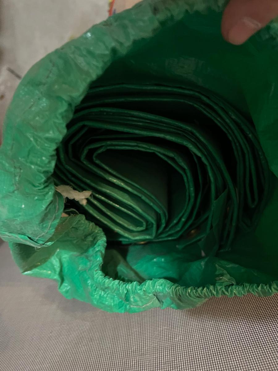 Garage:  Back Pack, Plastic Sheeting and Tarps