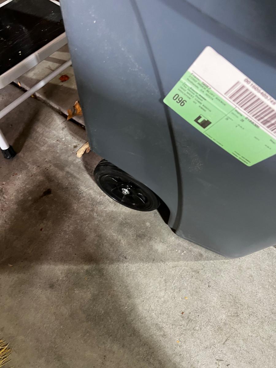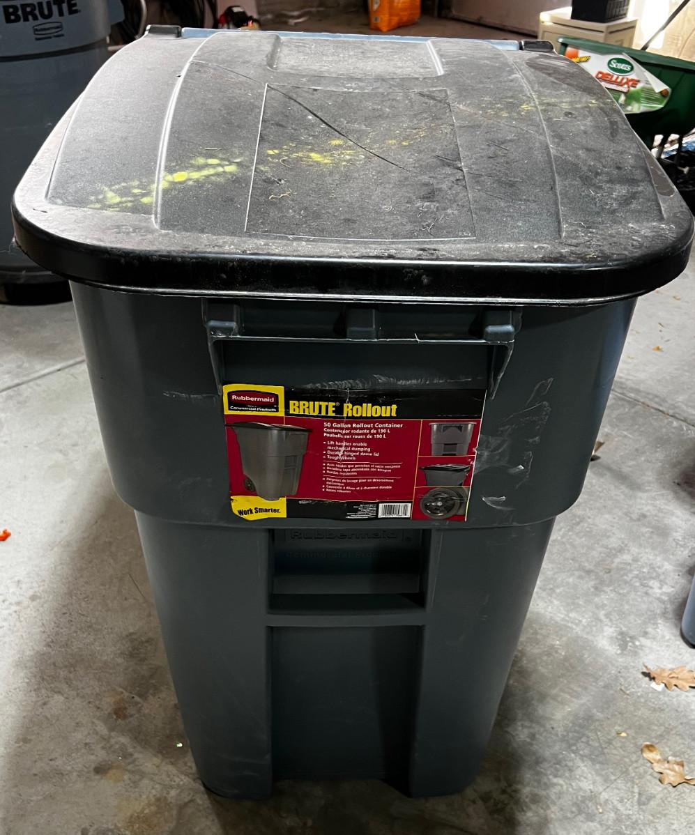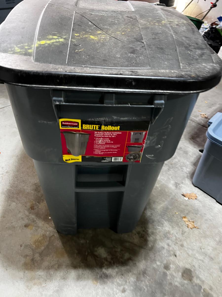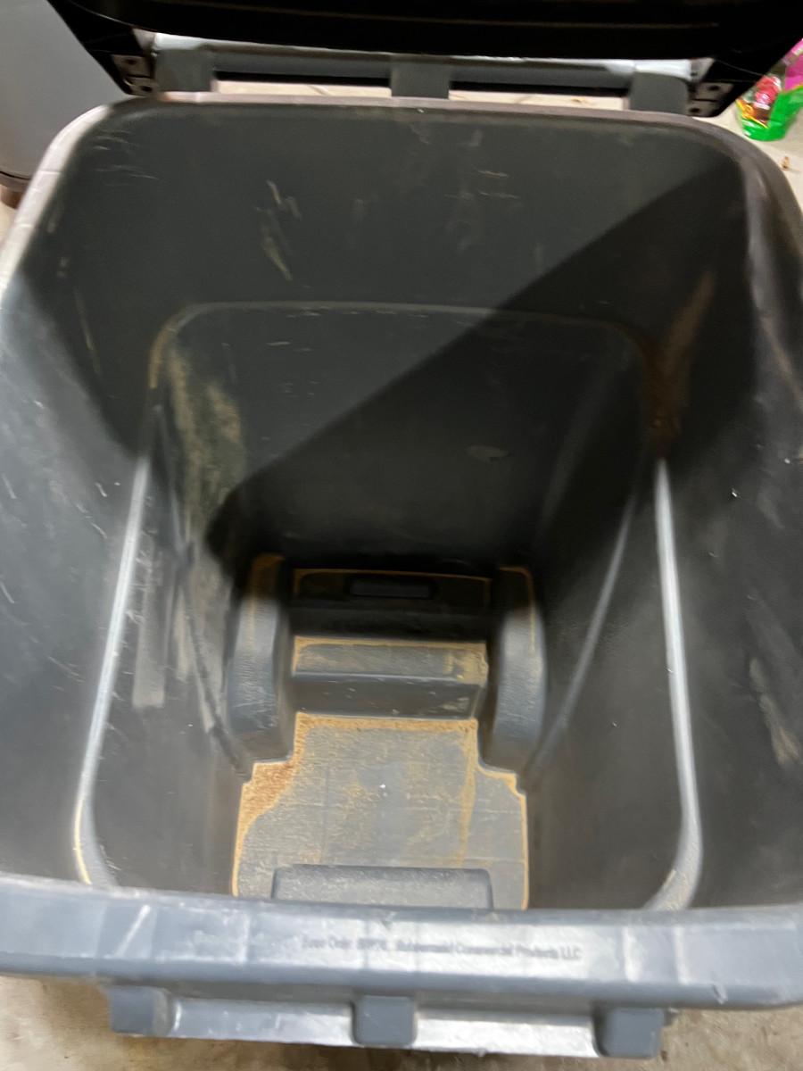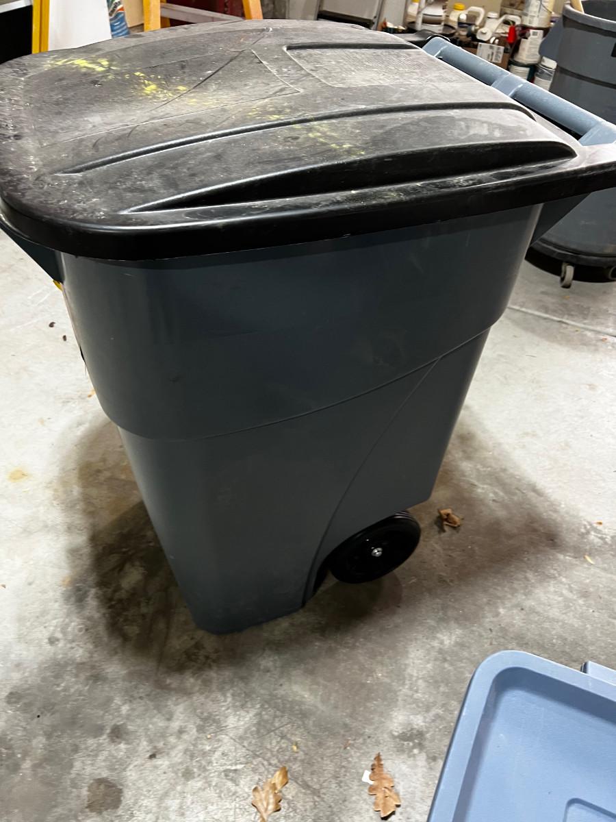 Good Working Condition. Rolling Garbage Can. Fairly Clean Used for wood Scraps. NOT GARBAGE