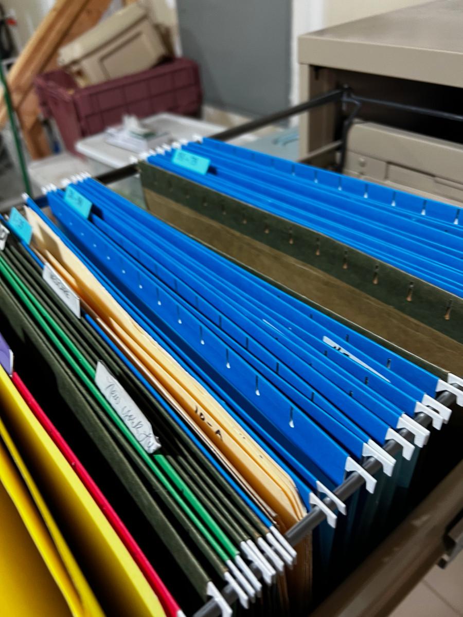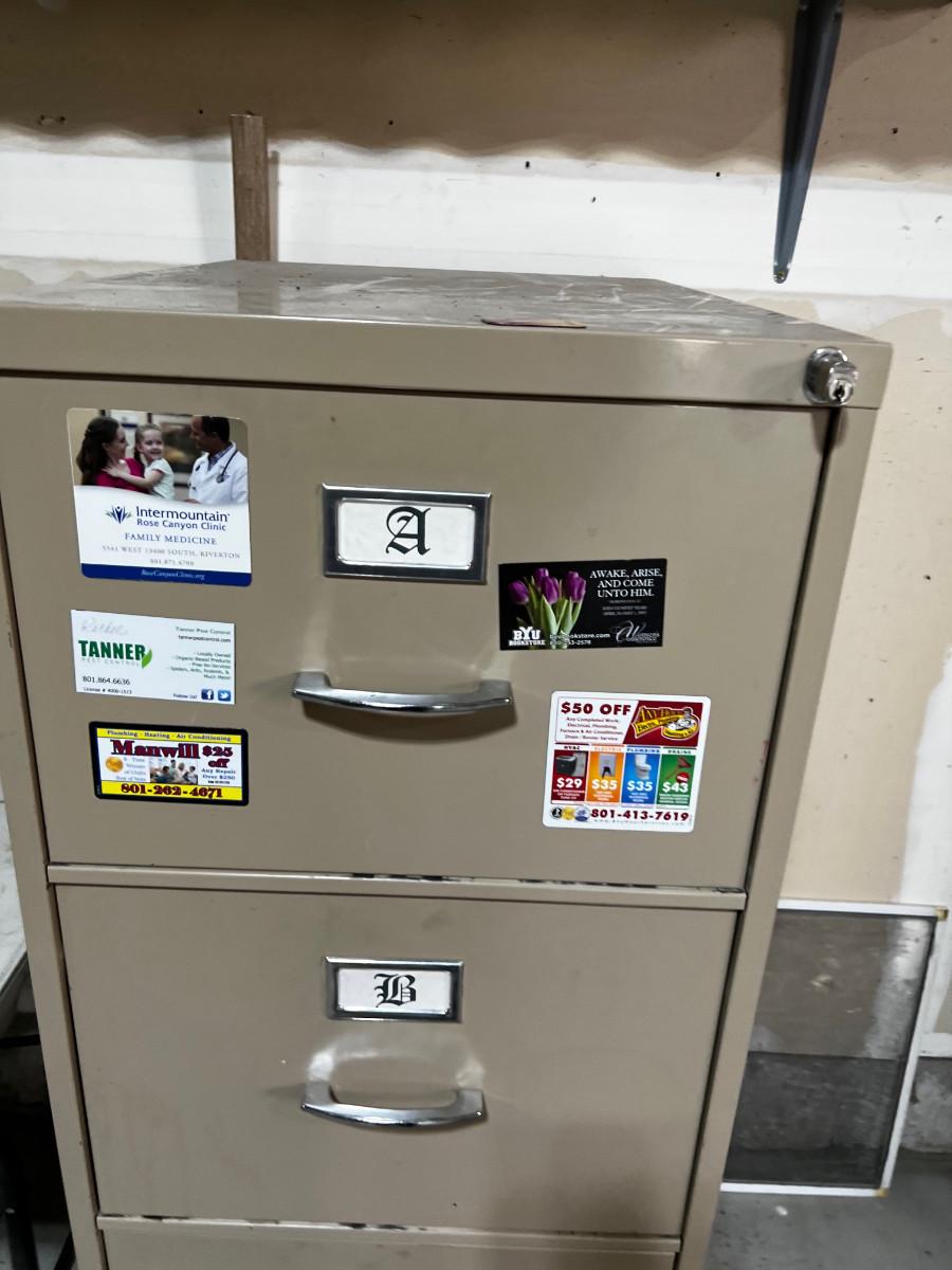 Garage; File Cabinet full of File Hangers. Legal Size