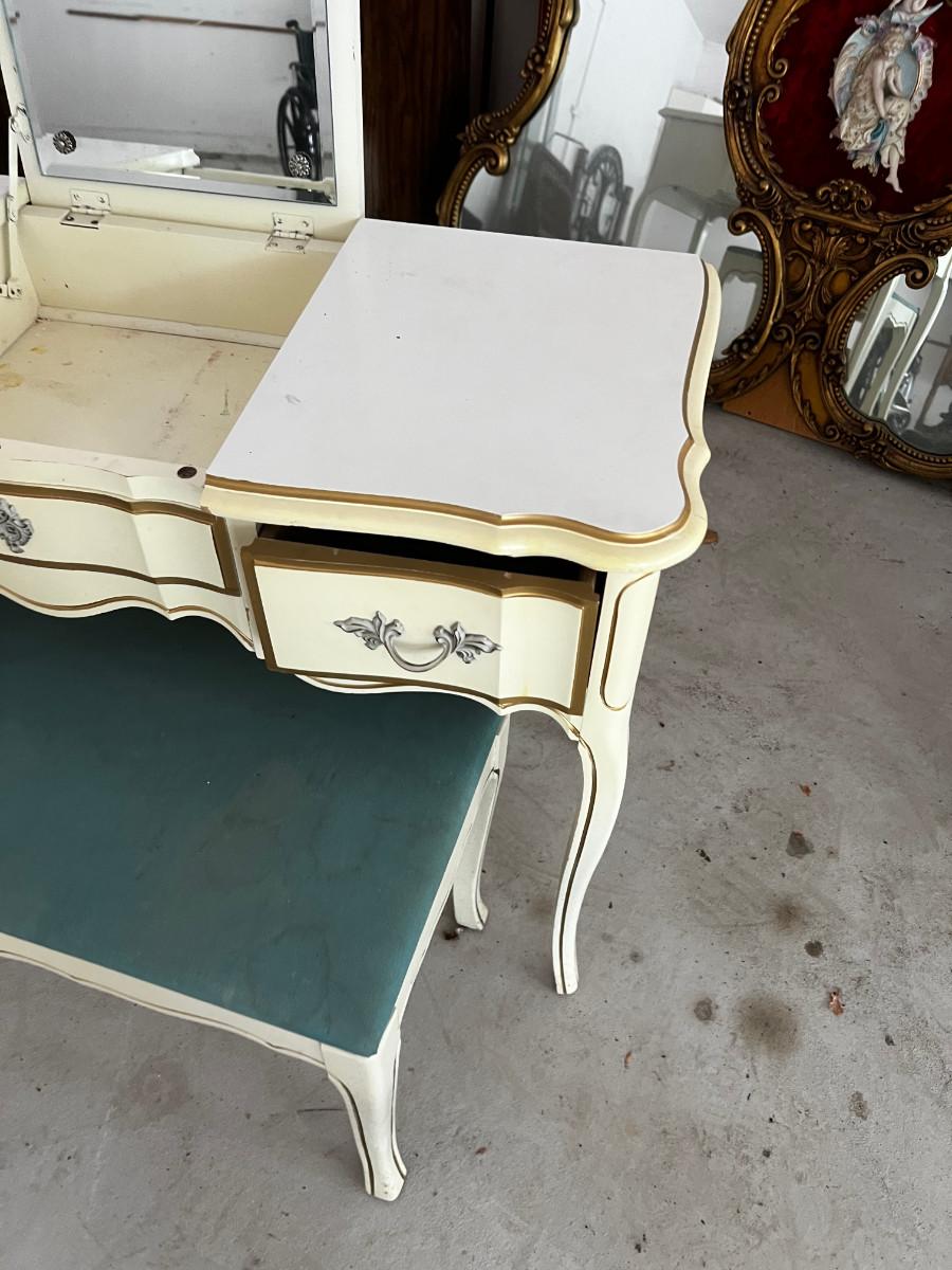 GARAGE -- French Proventil Cream Colored Vanity and Stool