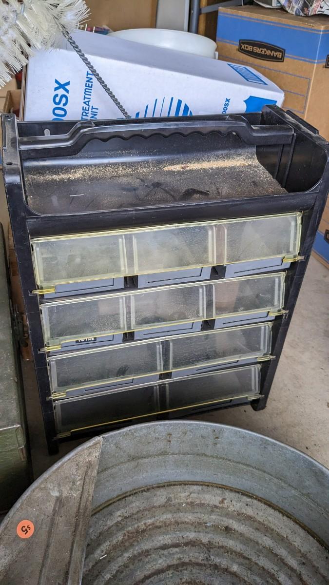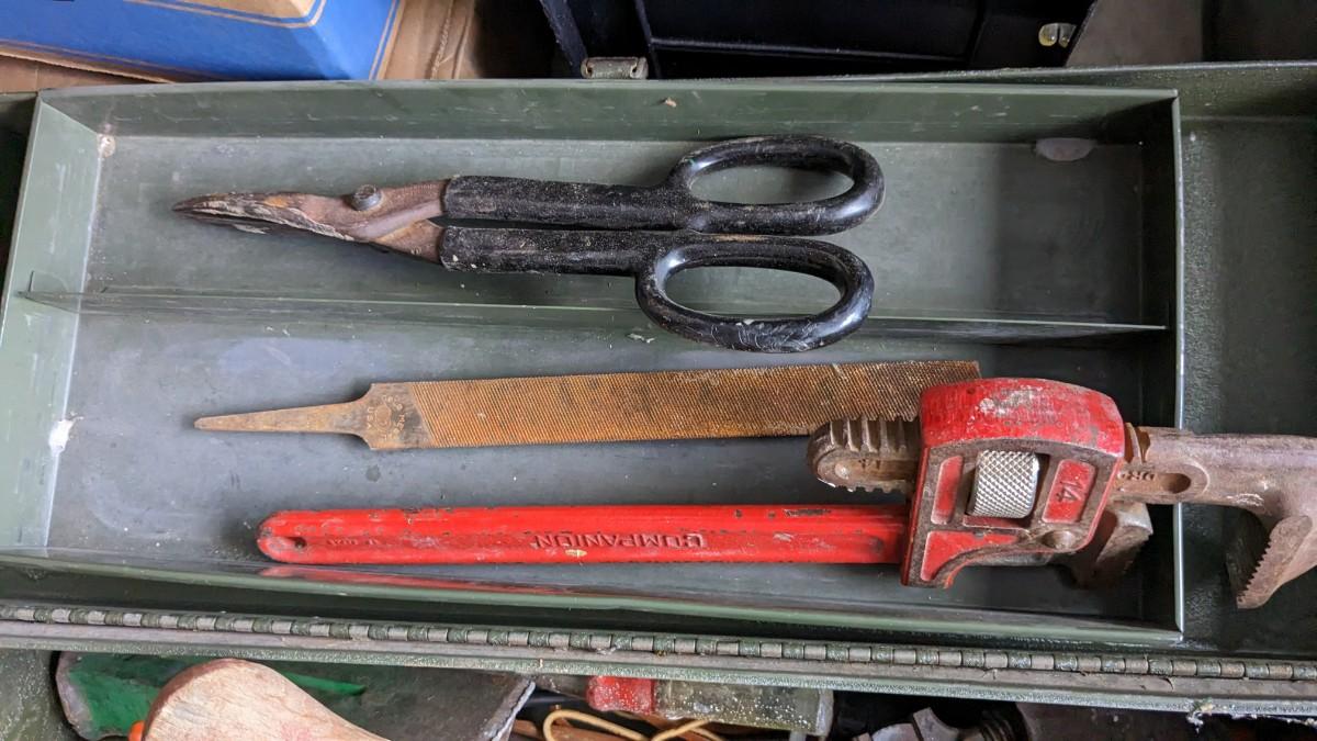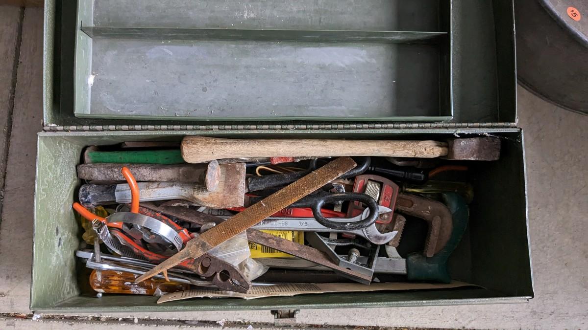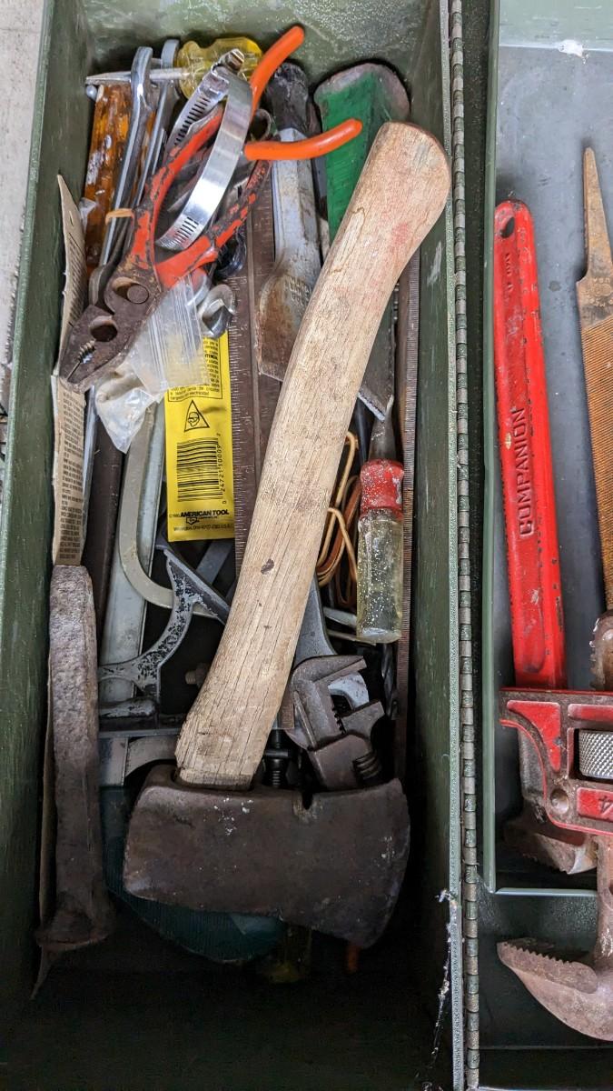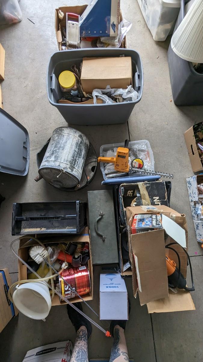 another massive amount of garage items ranging from architectural salvage to storage solutions. As well as galvanized goodies, vintage power and hand tools, hardware of all types, and more! No shipping. 2616