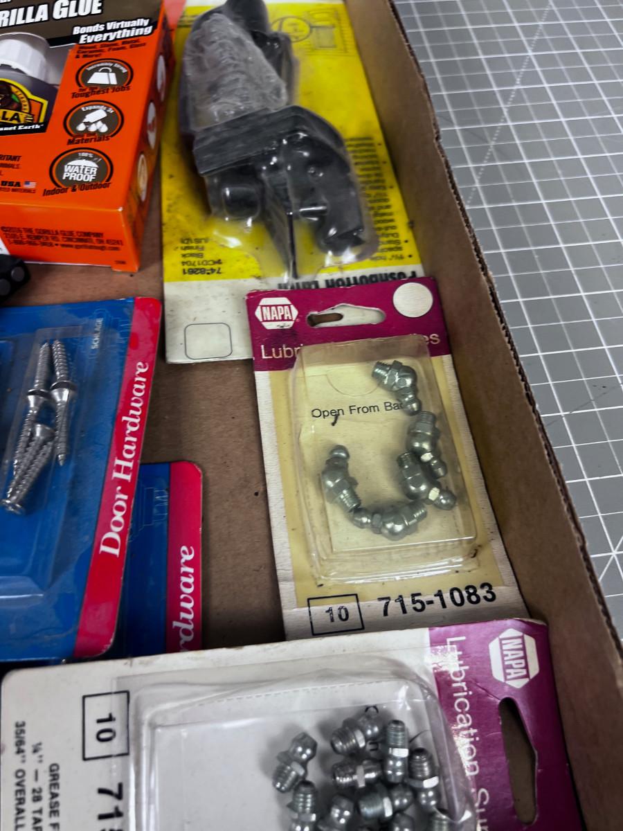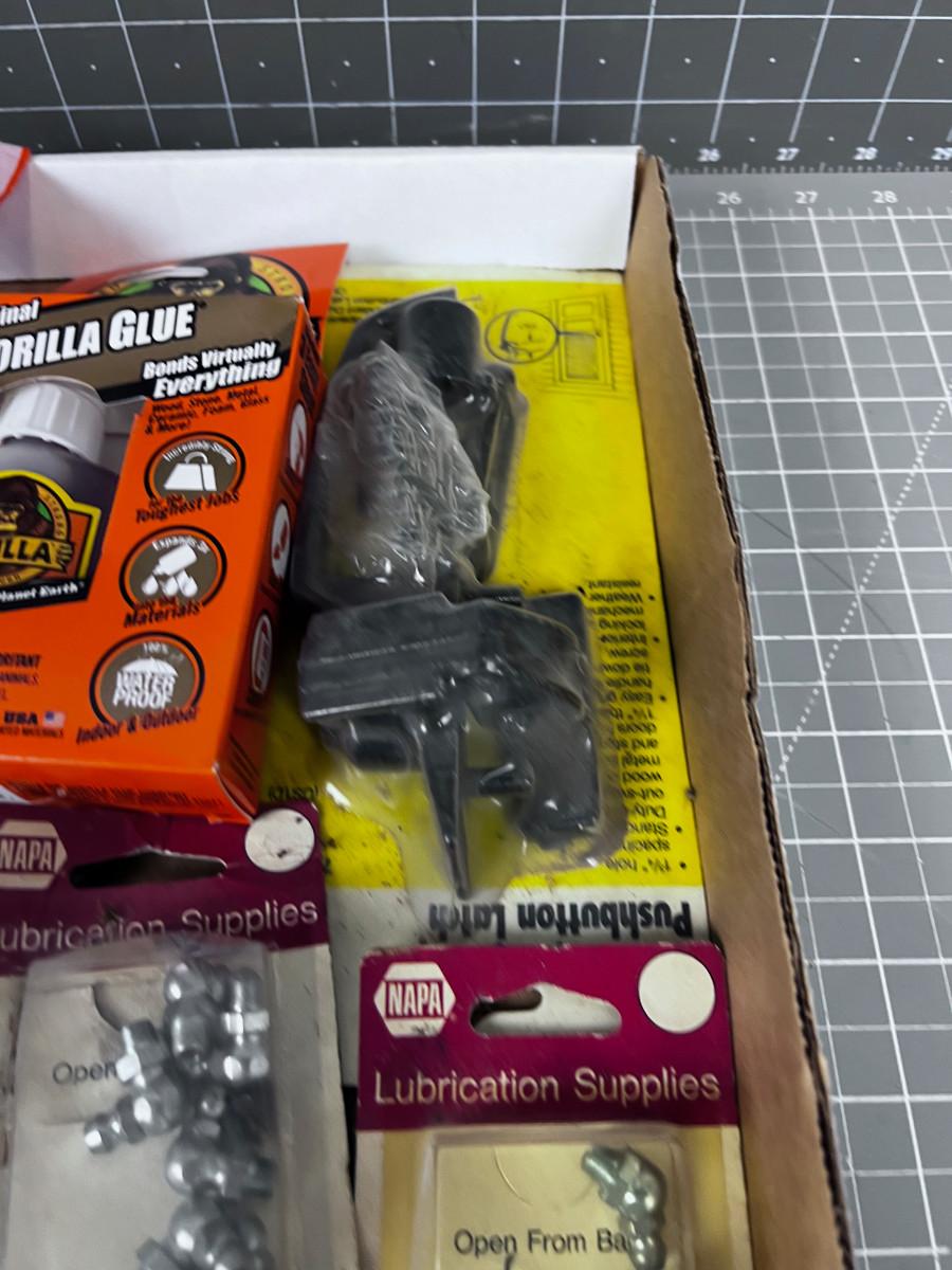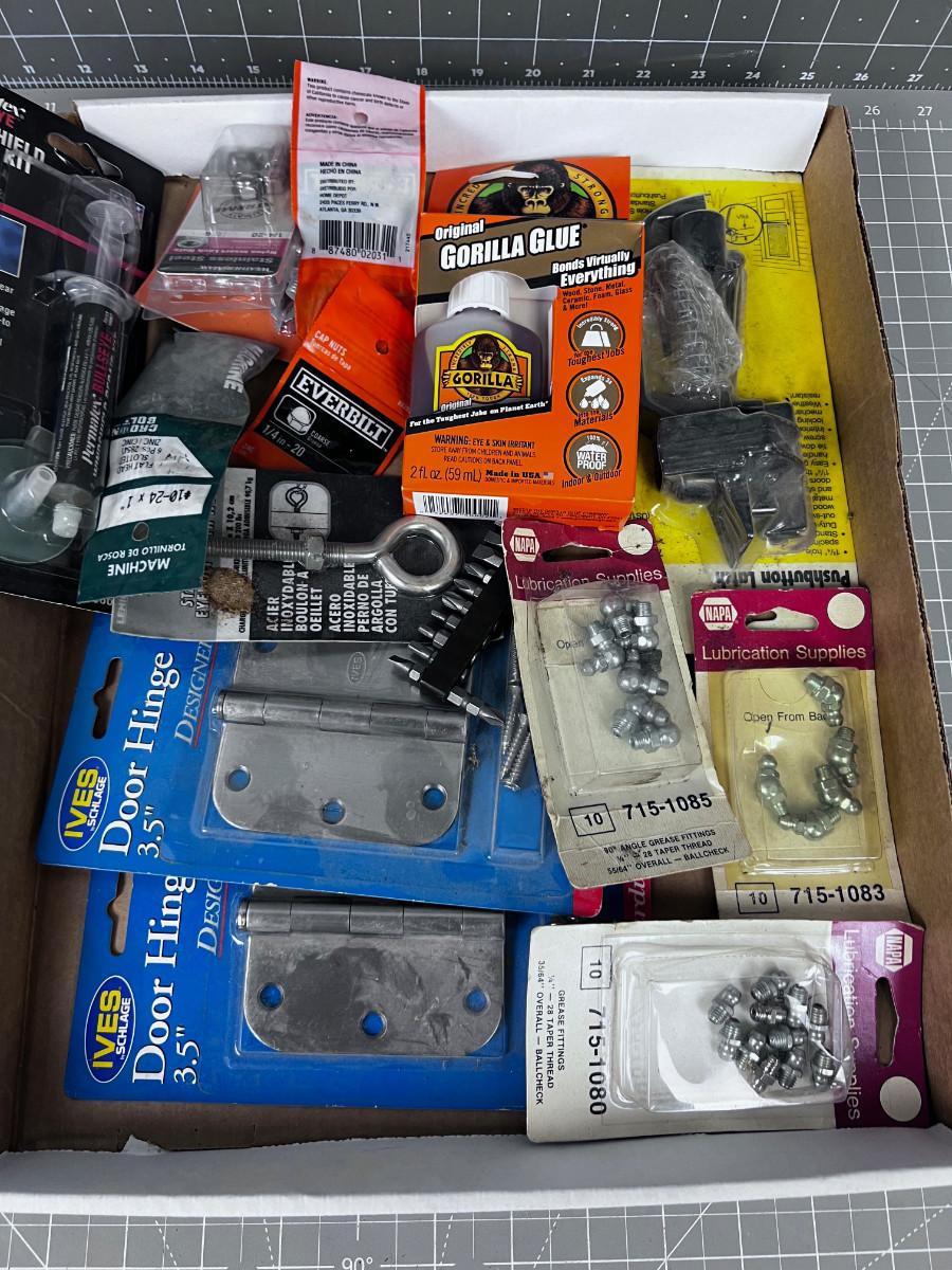 Garage Parts; Hinges Nuts and Bolts, Glue