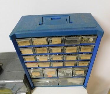 Garage Pigeon Hole Storage Box and Contents