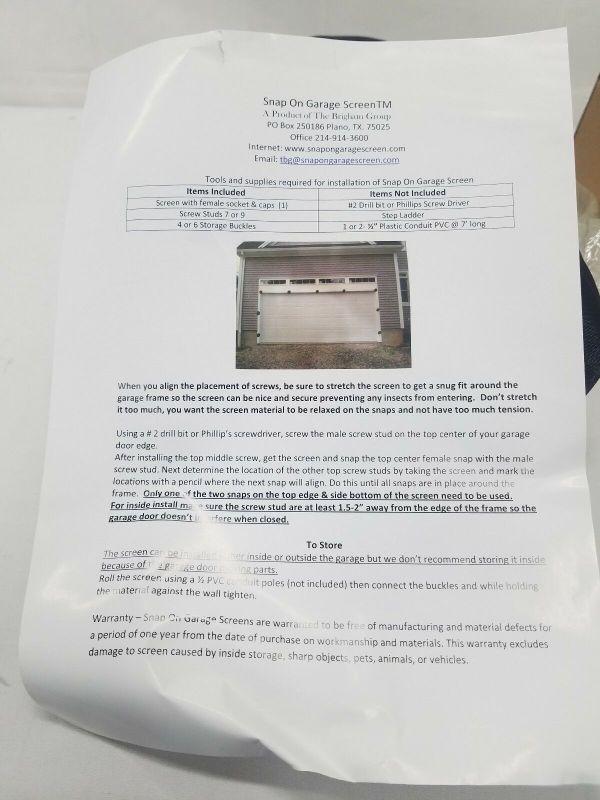 Garage Screen 12' x 8' New with Zipper & Buckle Clasps. Includes Hardware