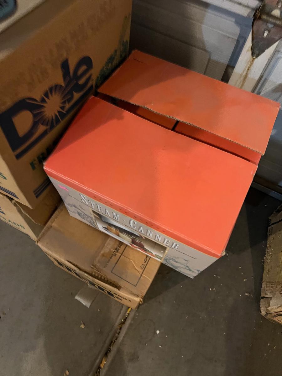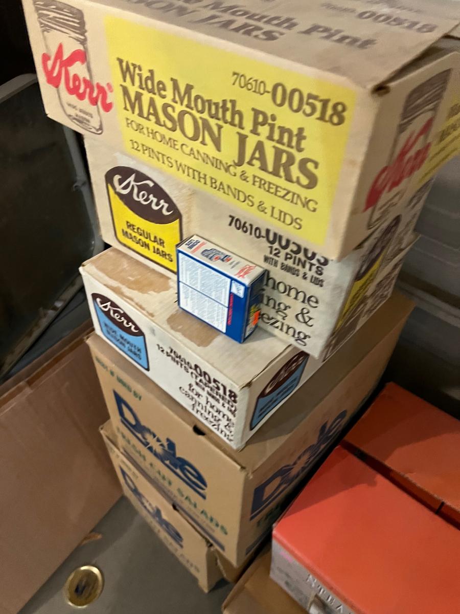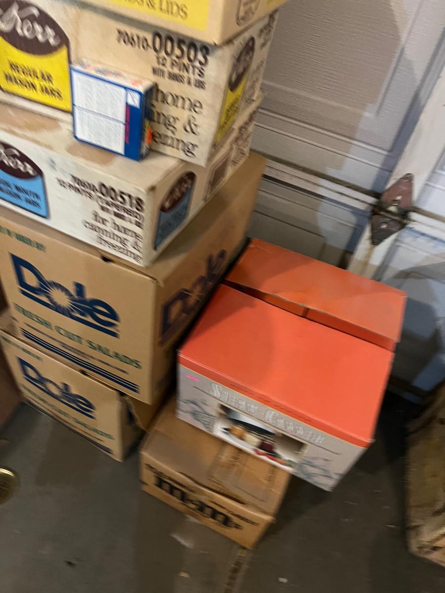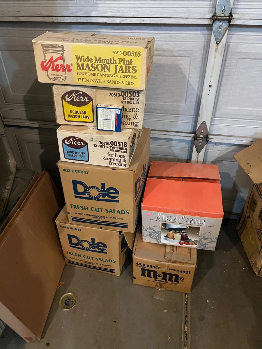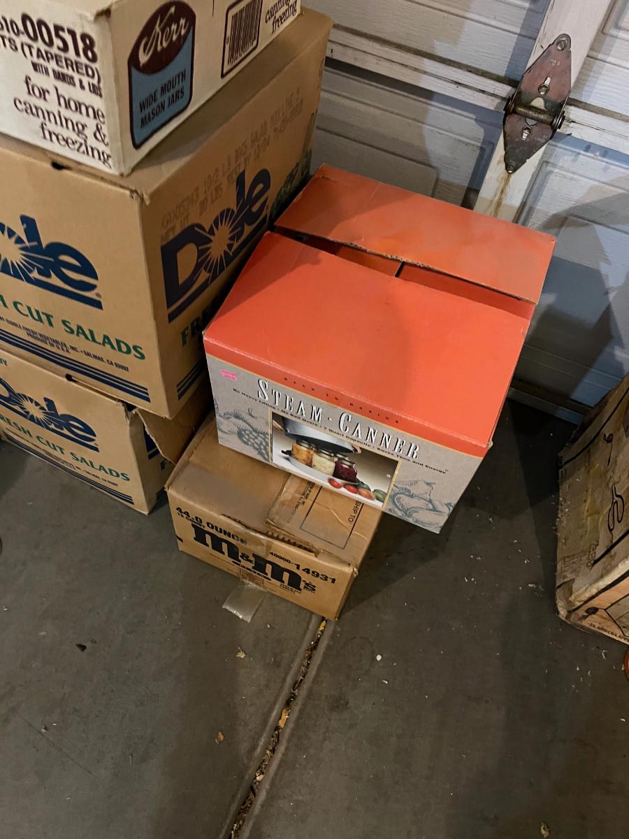 Garage:  Several Boxes of Quart & Pint Mason Jars and a Steamer