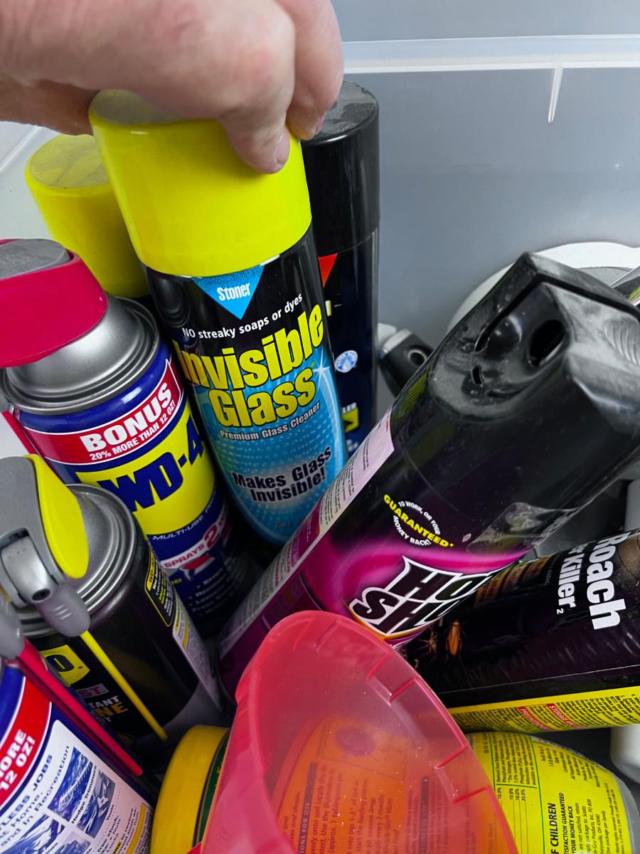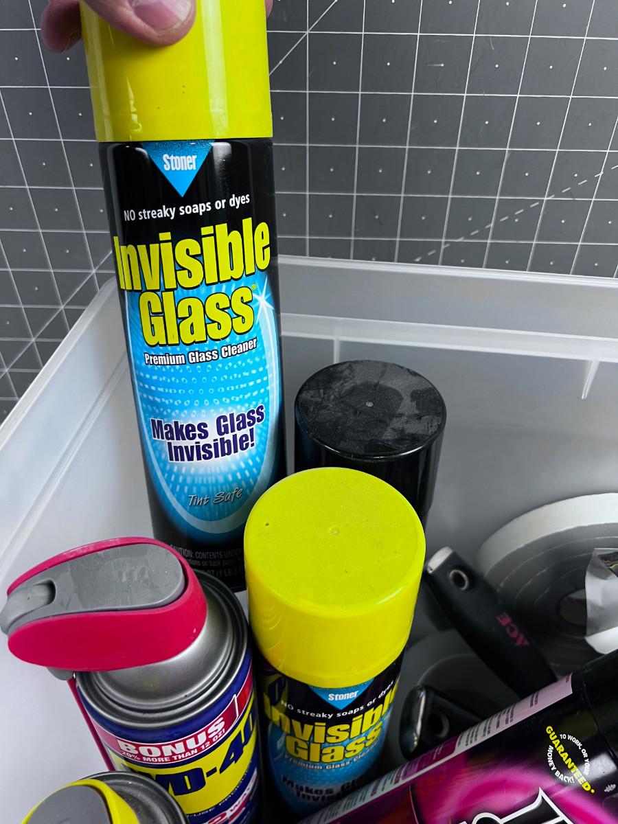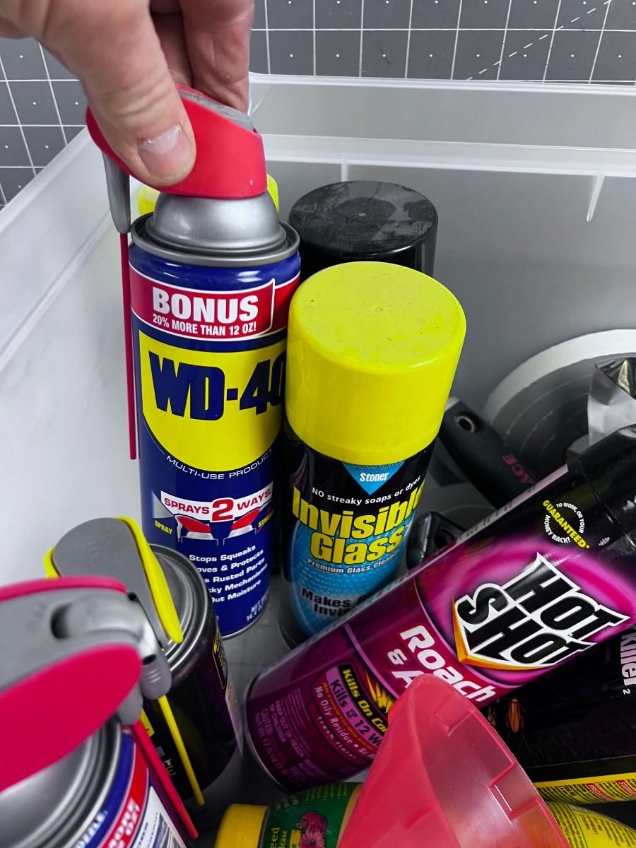 Garage Tube, Bug Spray, Glass Cleaner WD40 Etc.