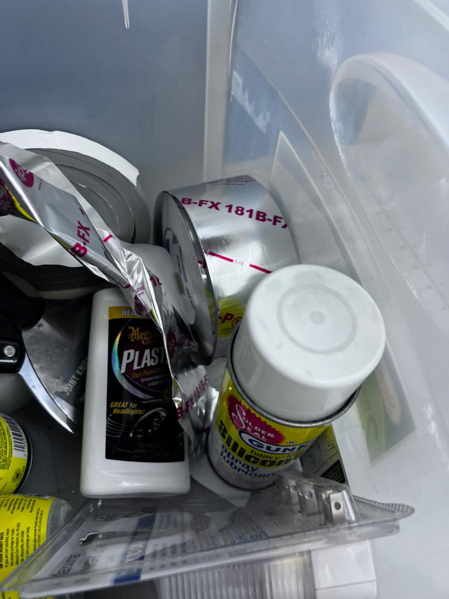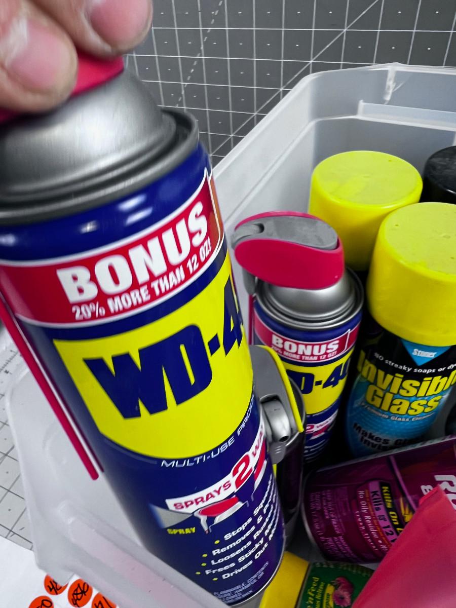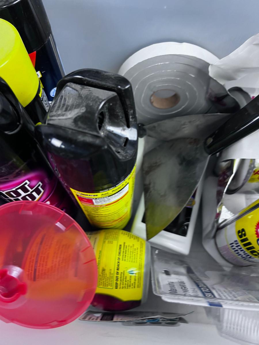 Garage Tube, Bug Spray, Glass Cleaner WD40 Etc.