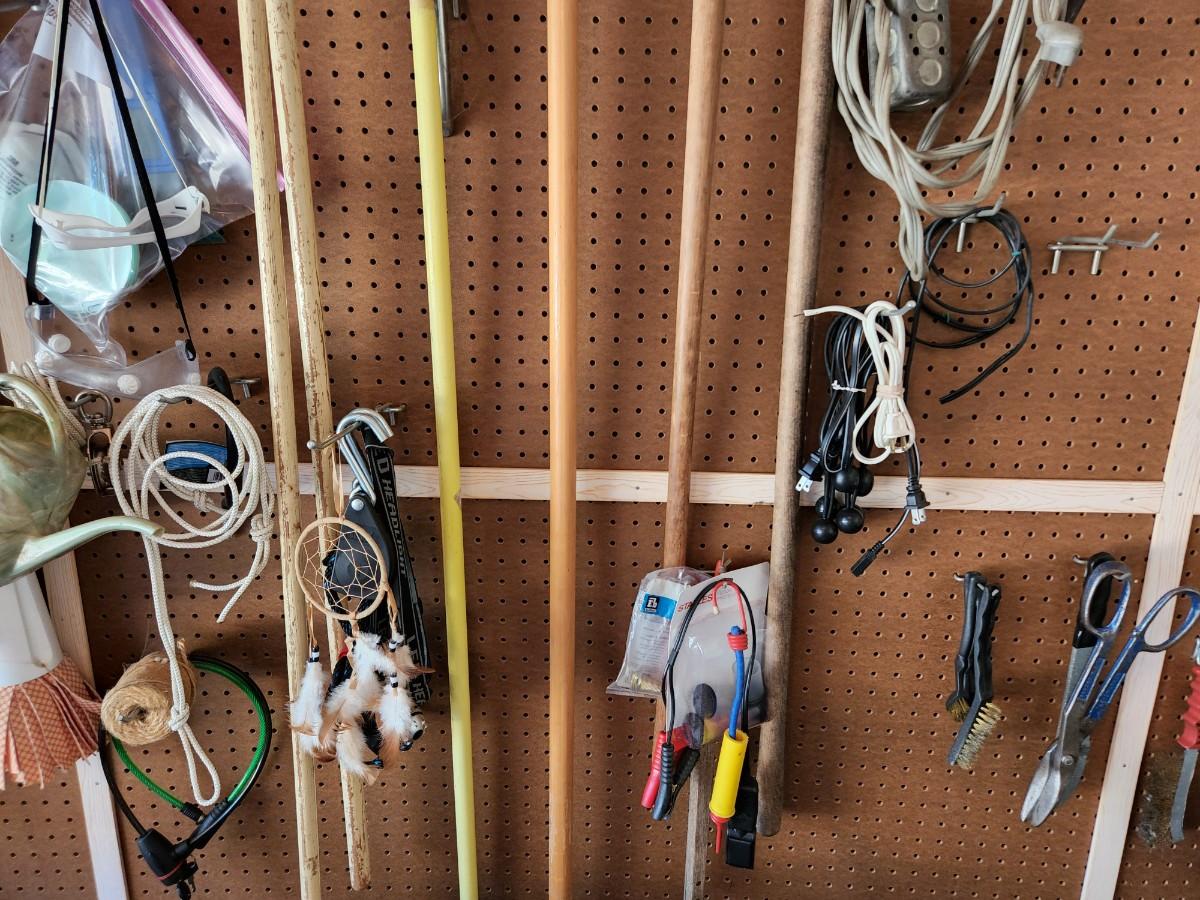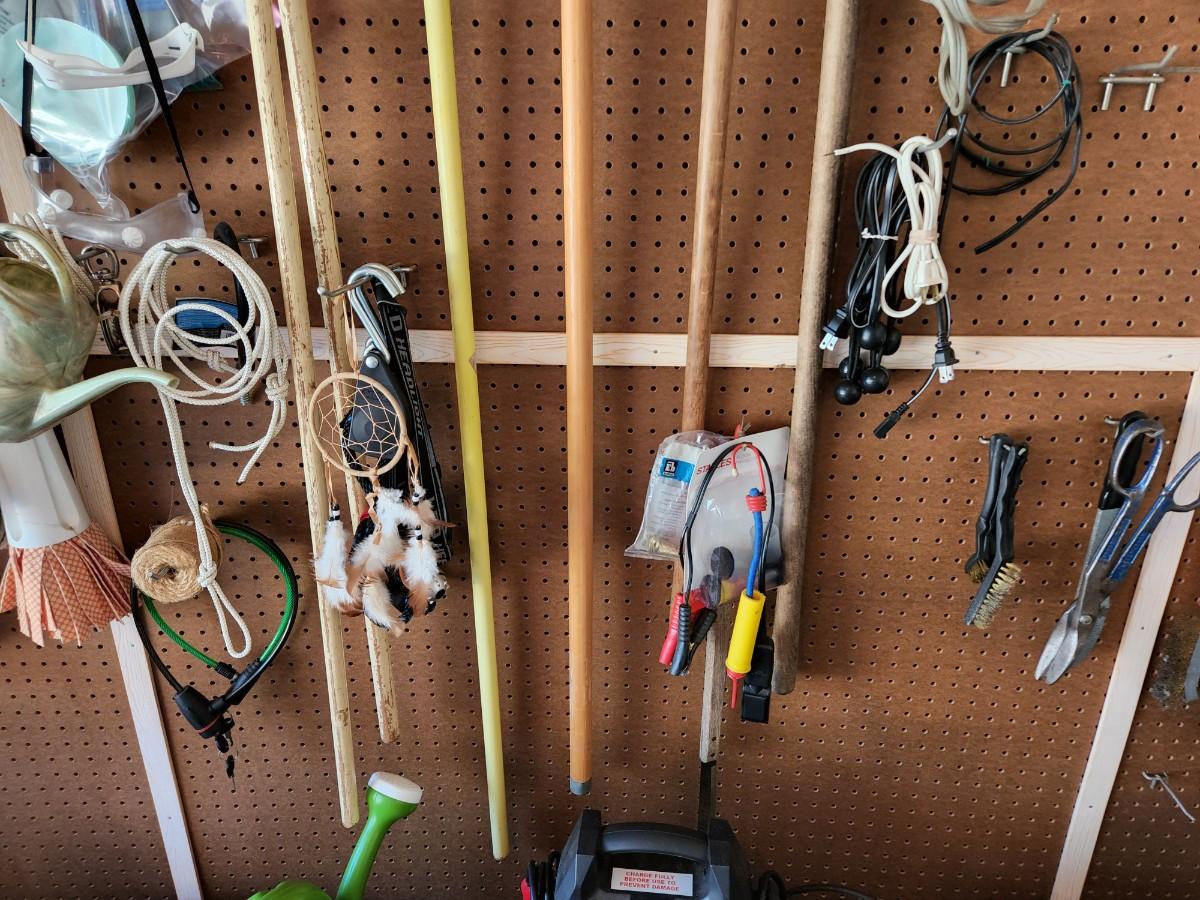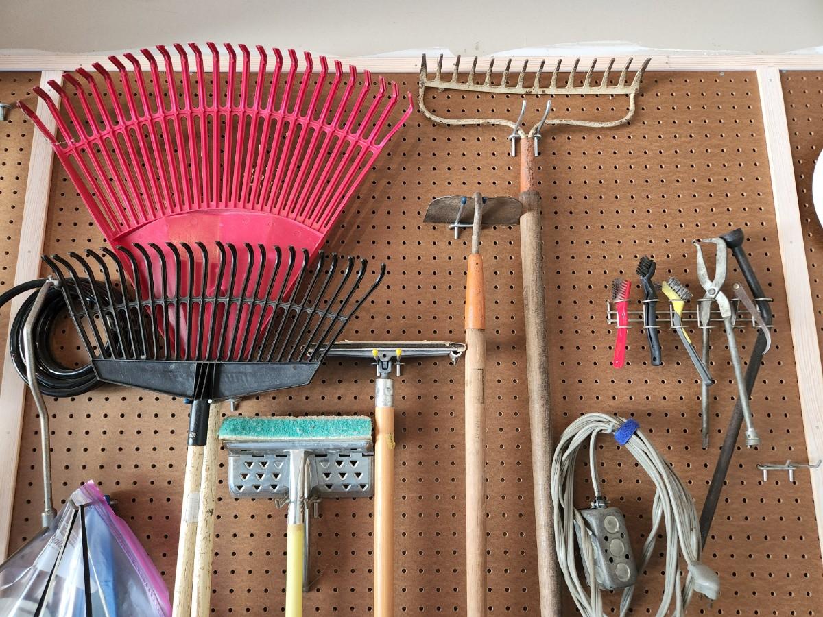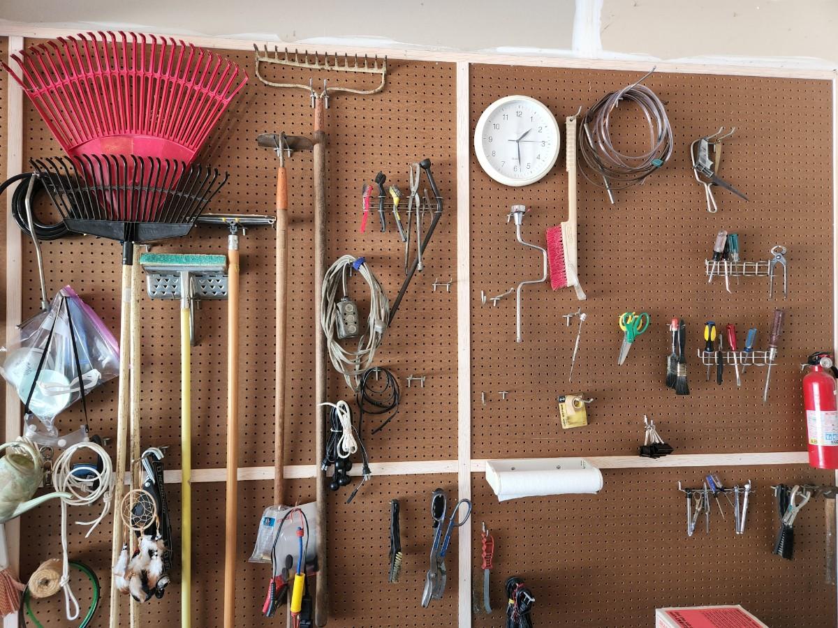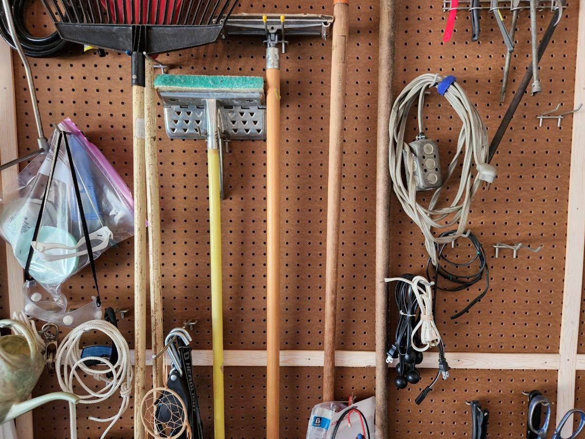 Garage Wall Section , Rakes, Hoe, Clock, Screwdrivers, WYSIWYG