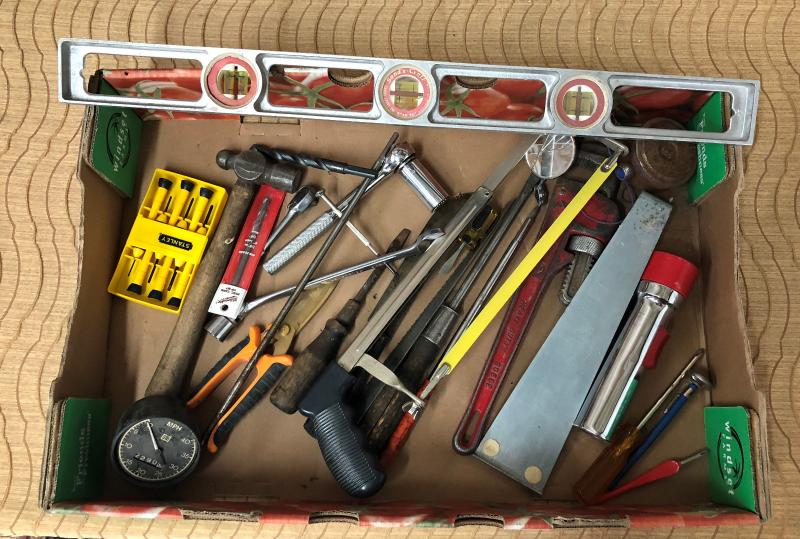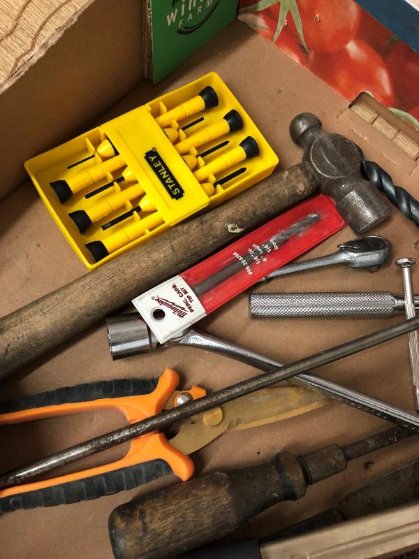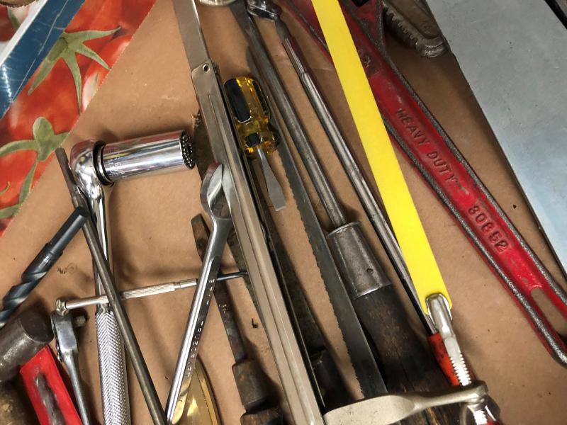 Here is a lot of garage and household tools and wrenches..Large variety...