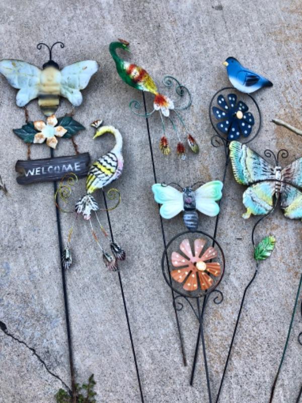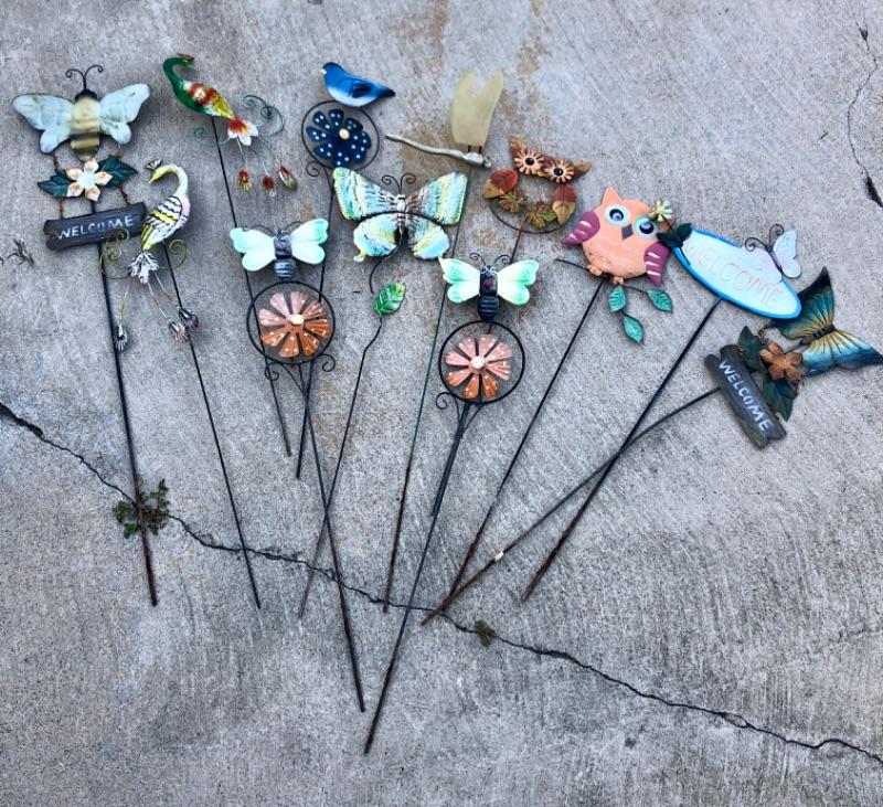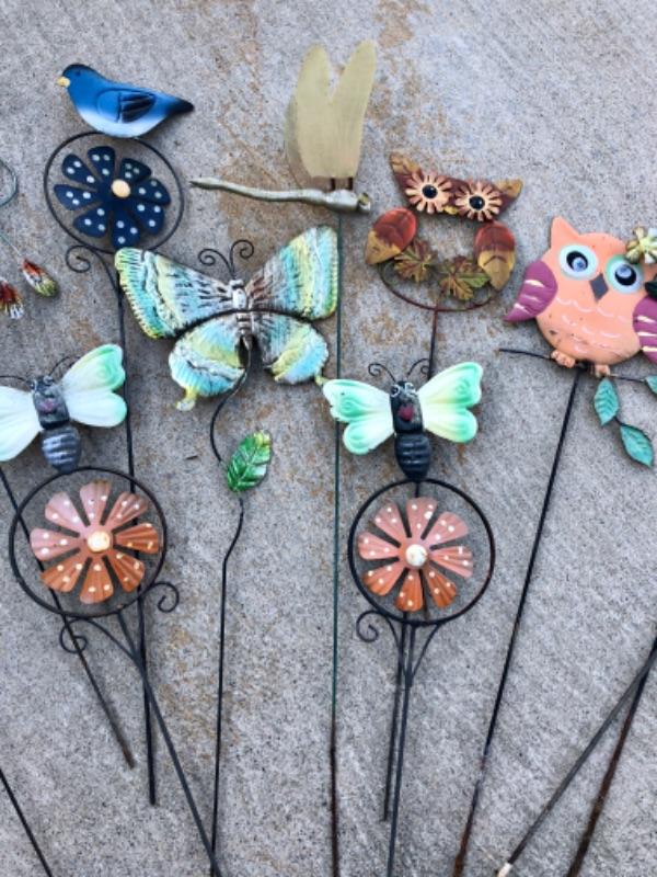 Garden Art Lot #5 whimsical garden stakes butterflies flowers etc, 12 pcs
